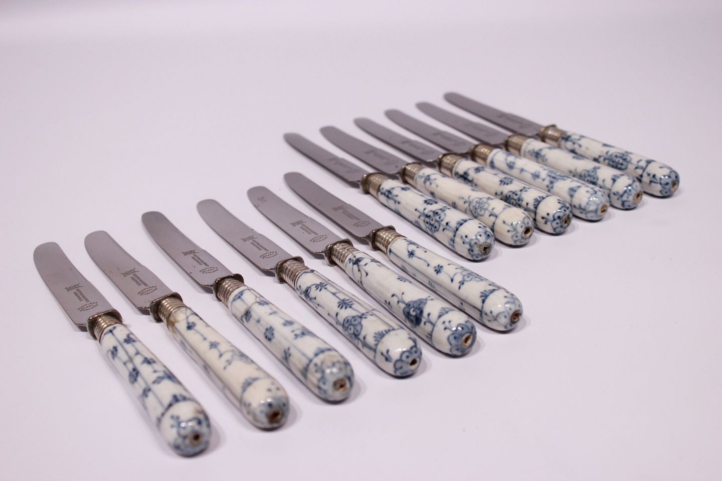 Sold2 pcs. blue fluted knives with steel blades.