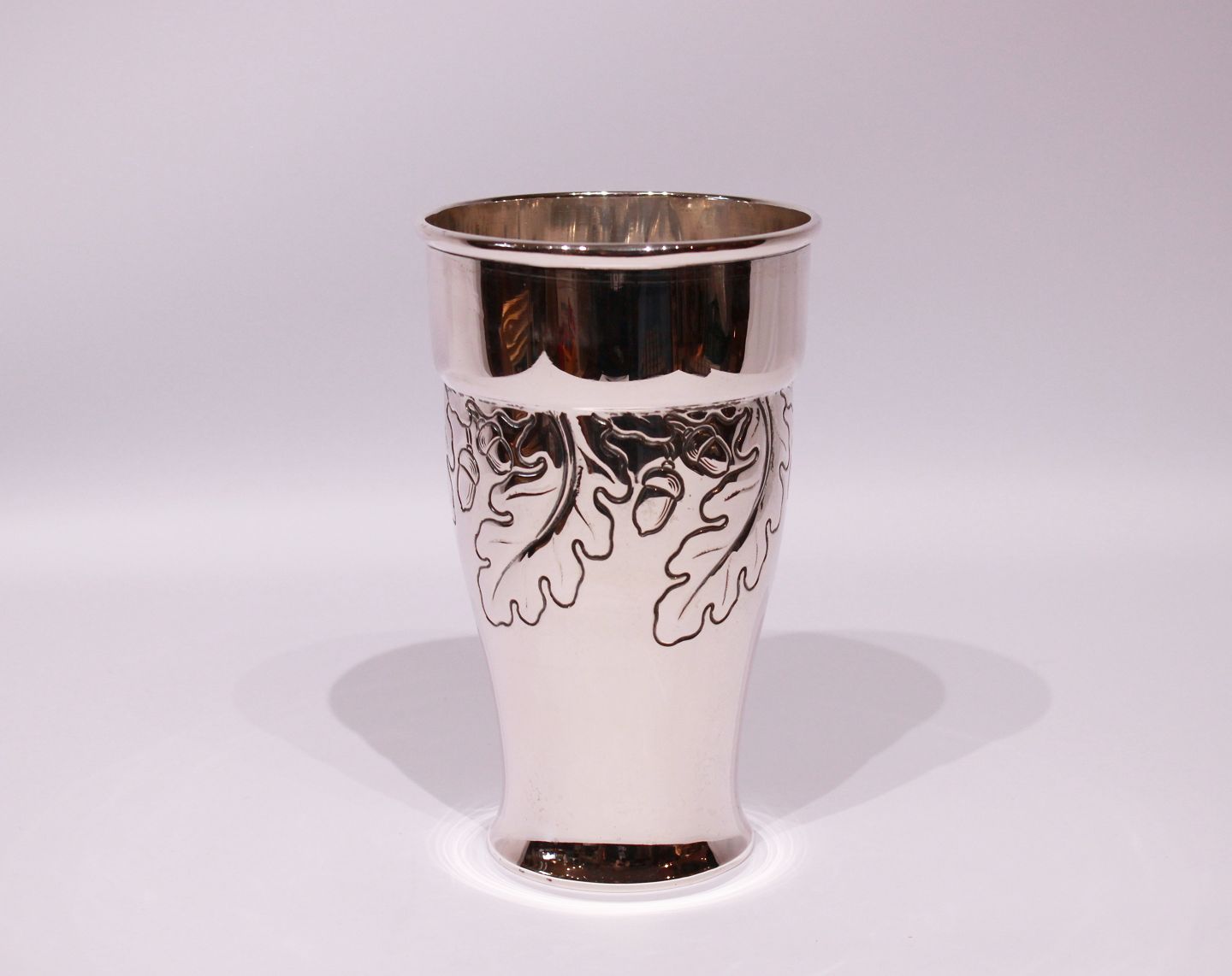 Vase dekoreret med flot Ahornblad- og nøddemotiv, tretårnet sølv.