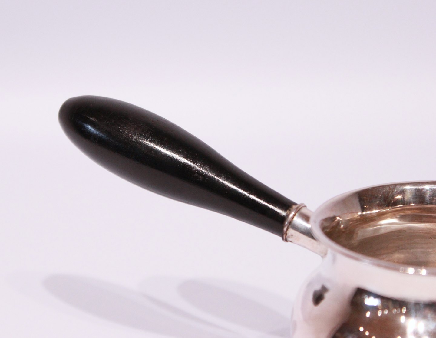 Lille sølv sovsenæb med ibenholt håndtag af guldsmed Christian Obbekjer, f1835-d1873.