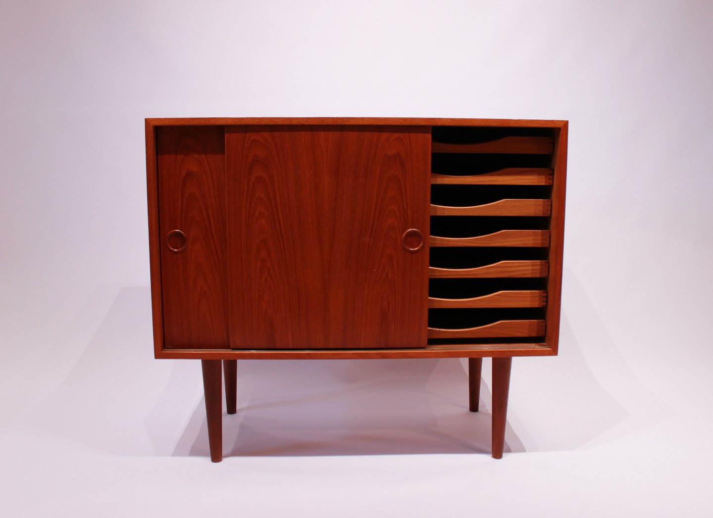 SoldSimpel sideboard in teak with sliding doors and shelves manufactured by FM Furniture in the 1960s, and of Danish design.