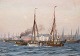 SoldMarine painting with Copenhagen's towers in the background and with gilded frame by Johan Neumann.