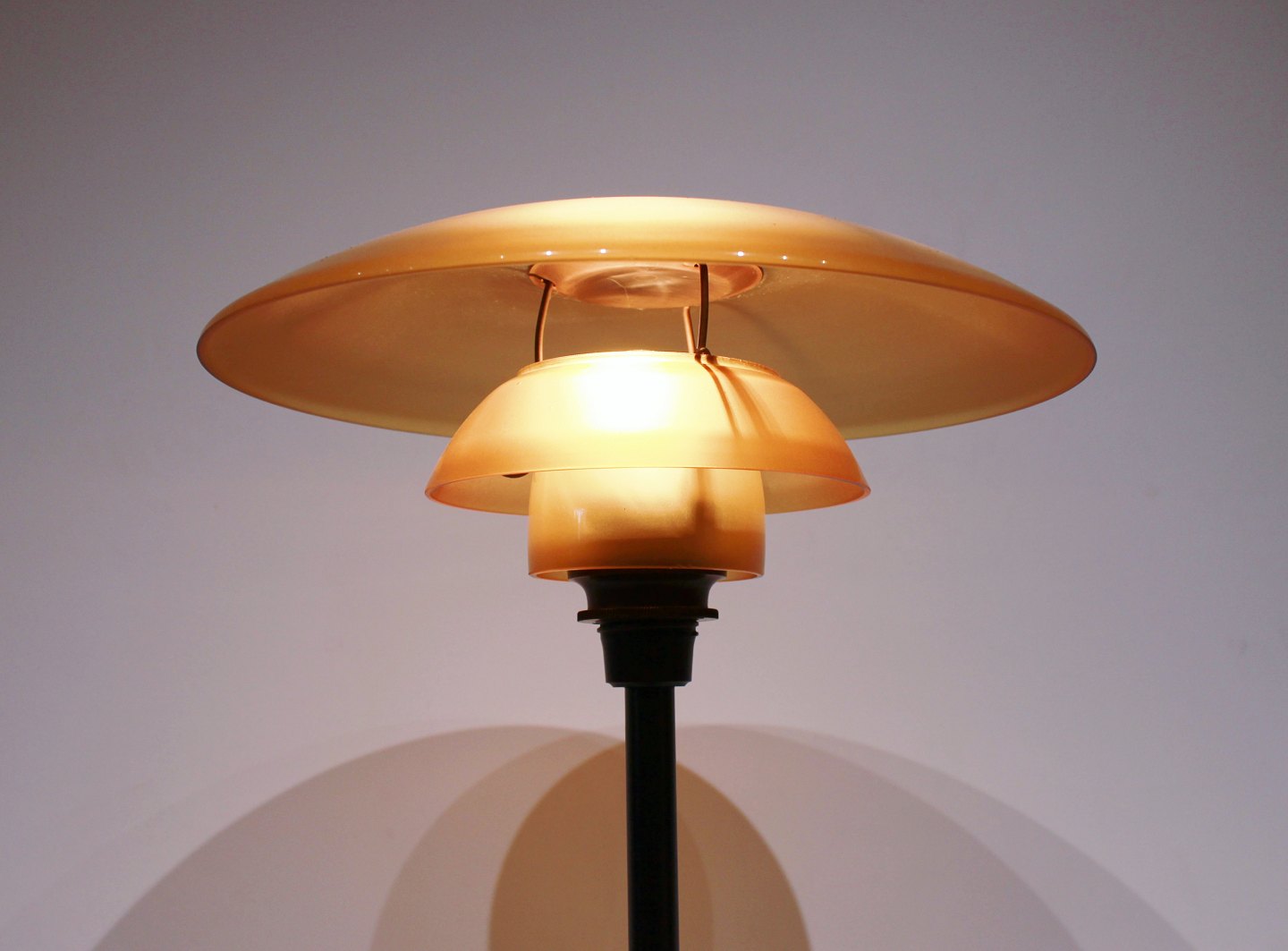 SoldPH 3/2 tablelamp with amber colored shades by Poul Henningsen and Louis Poulsen. The lamp is from the 1920s and is in great vintage condition.