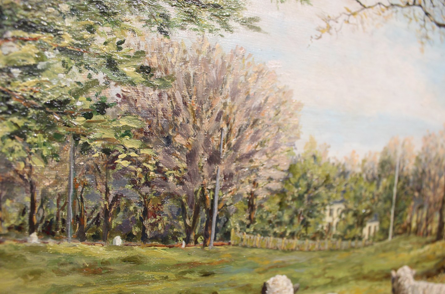 SoldOil painting with countryside motif signed C. Hansen. The painting is in great vintage condition with gilded frame.