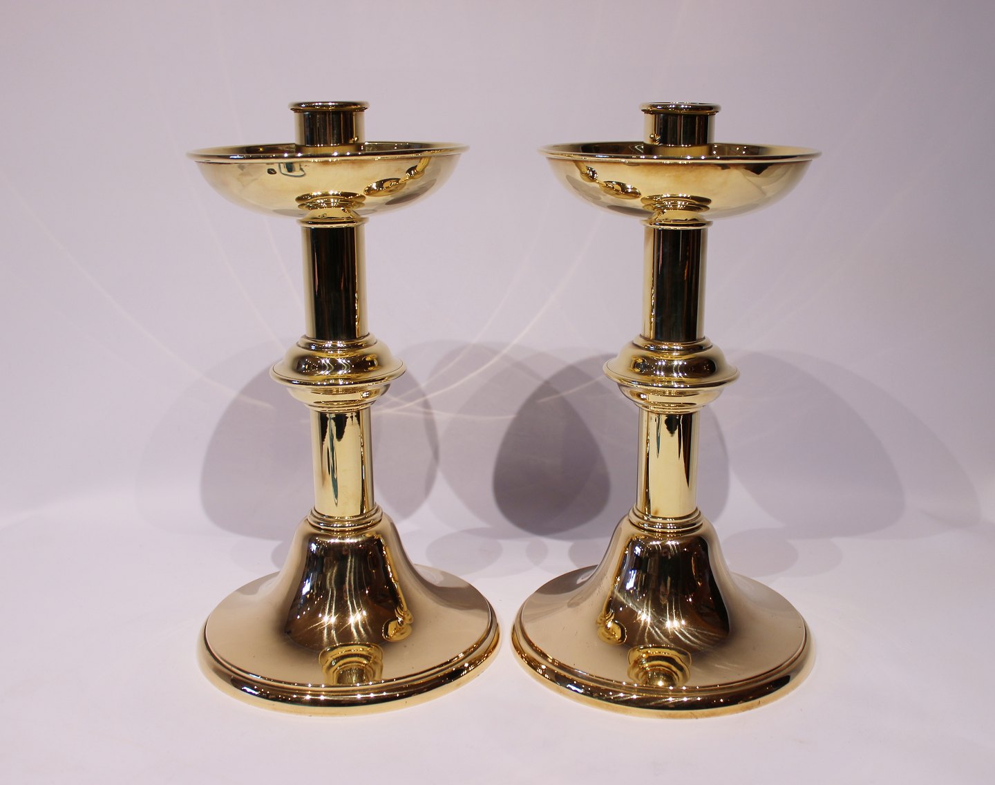 A pair of tall round brass candlesticks, in great vintage condition from around the 1930s.