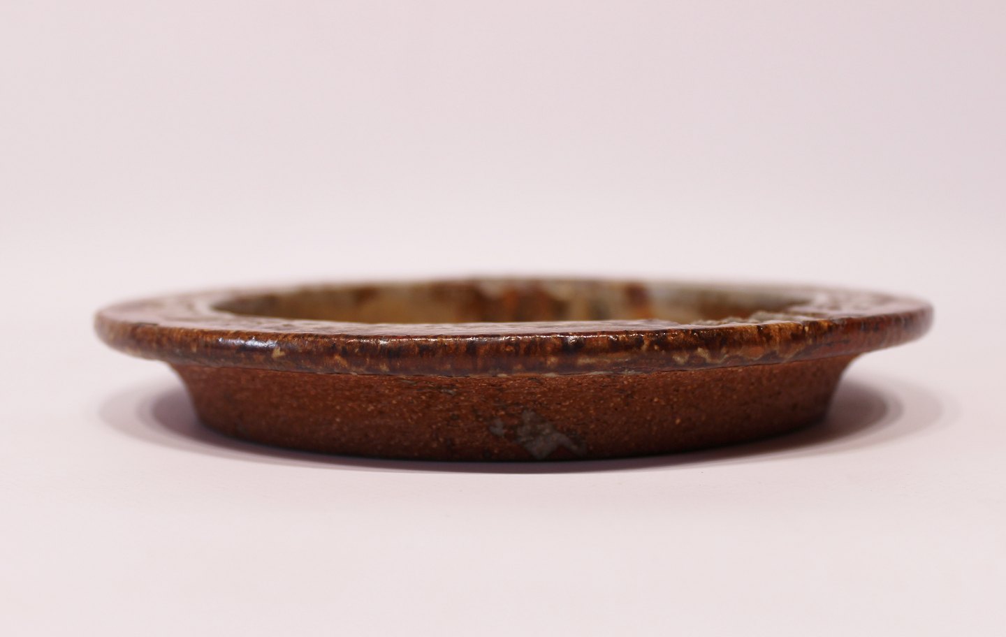 Brunt stentøjsfad med lys glasur af Axella Design.