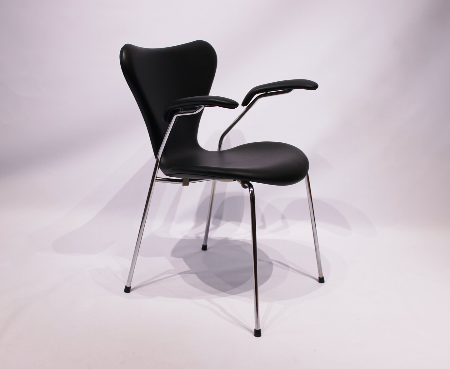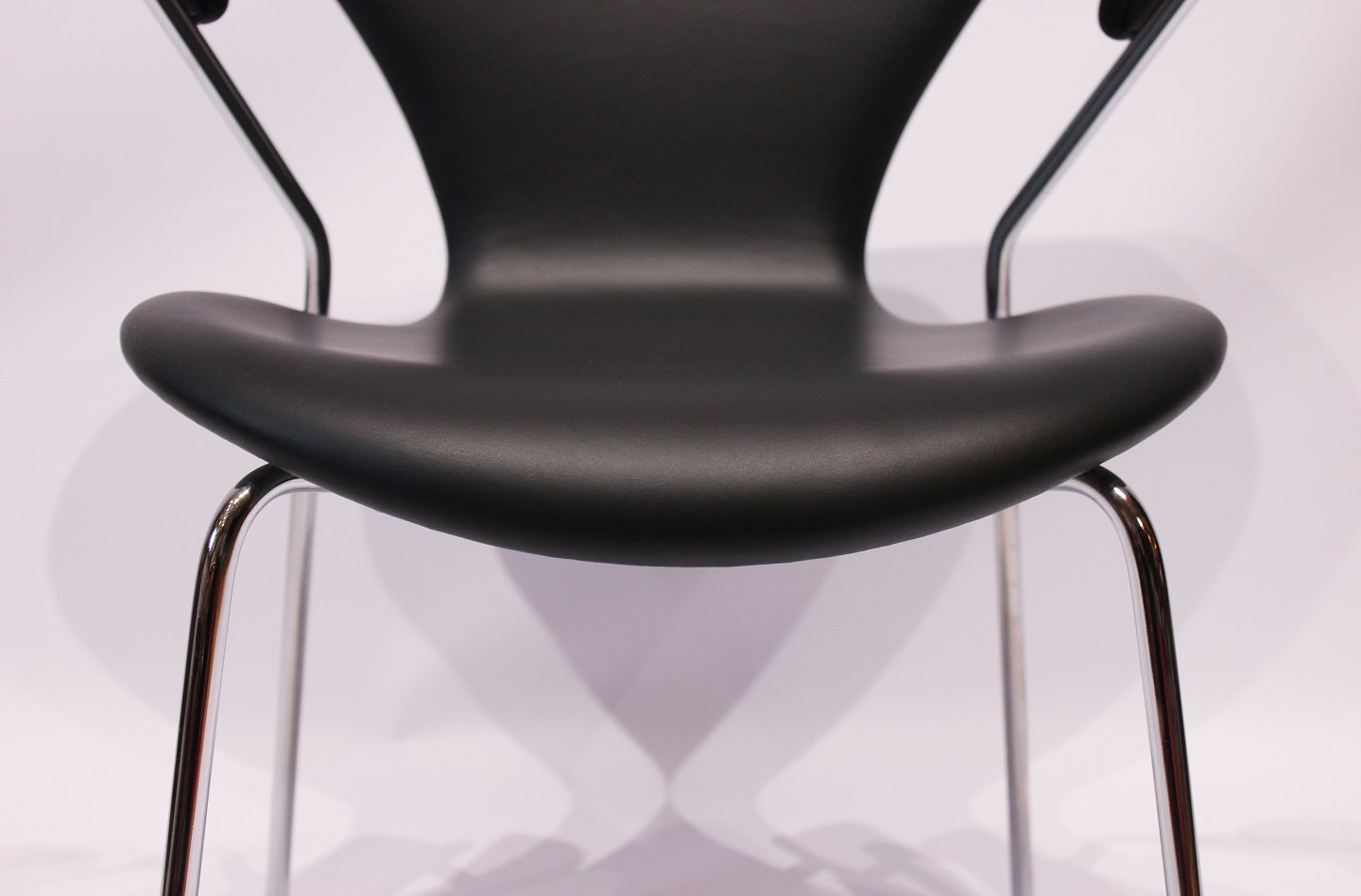 Experience a true design classic with the Syver chair, model 3207, with armrests, designed by the legendary Arne Jacobsen in 1955 and handcrafted by Fritz Hansen. This iconic chair is the expression of simplicity and elegance that fits perfectly with any modern decor.