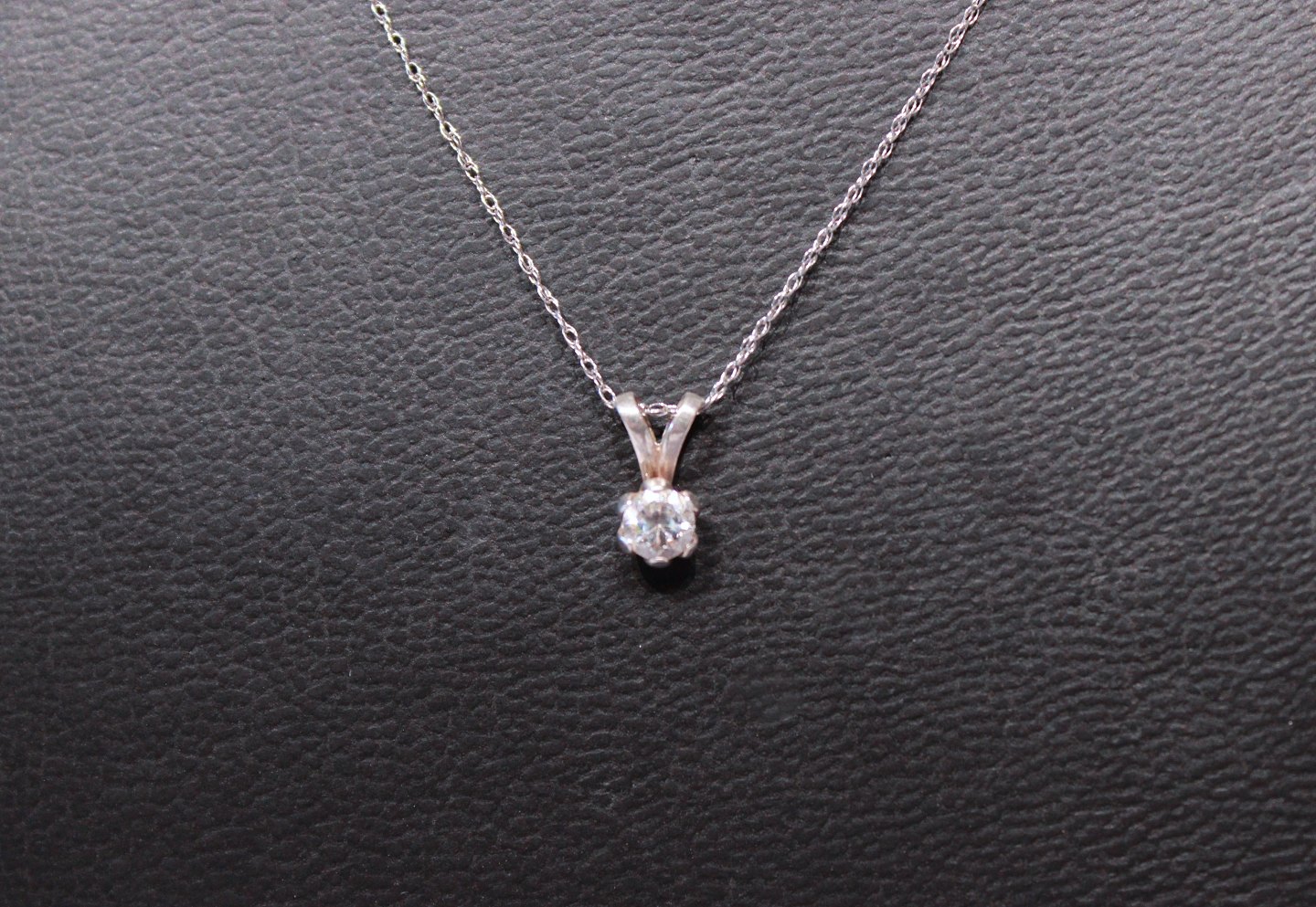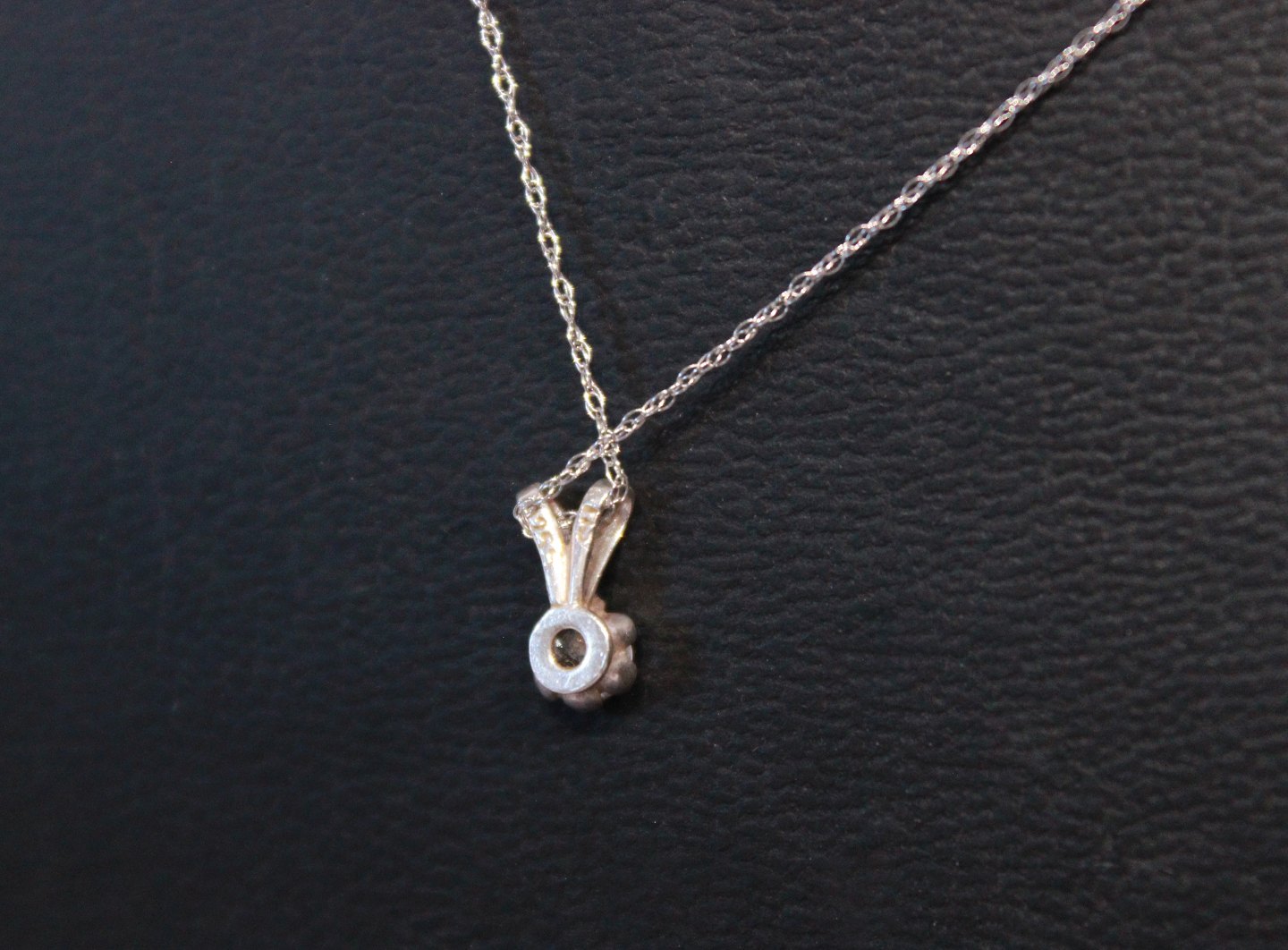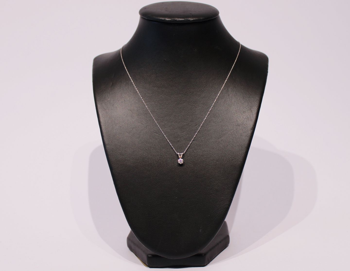 Necklace in 10 ct. white gold, stamped AU, with pendant in 925 sterling ilver with stone.