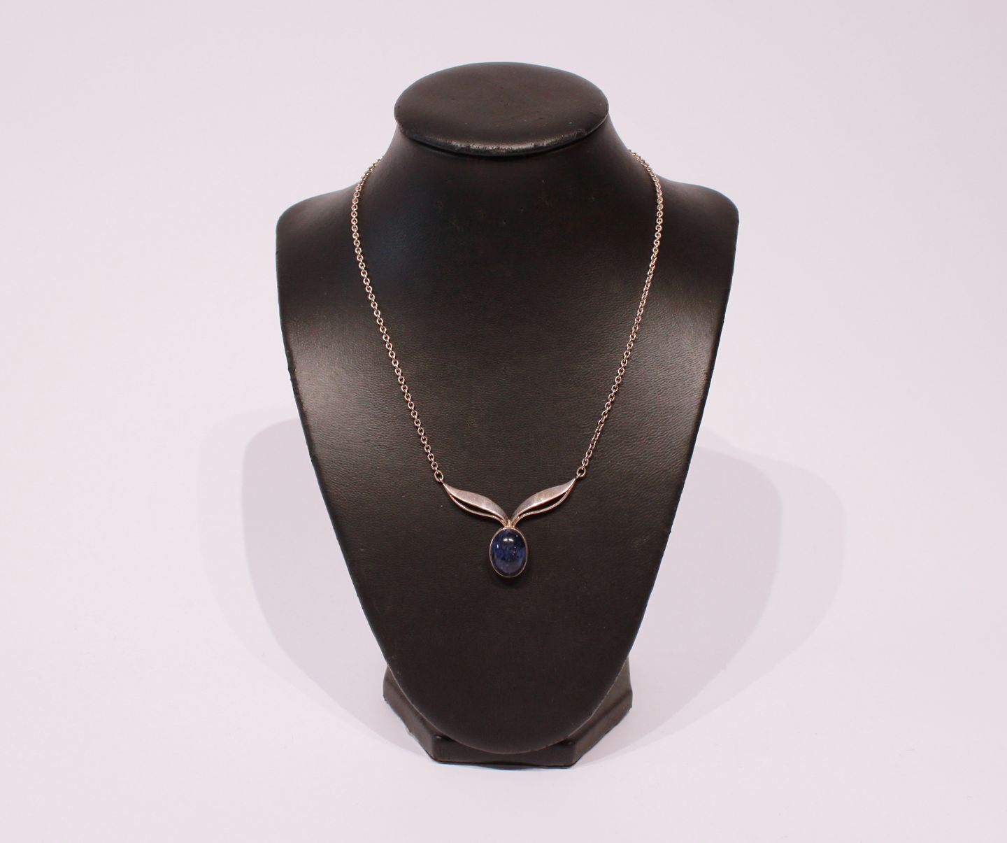 Halskæde i 925 sterling sølv med vedhæng af Lapis Lazuli sten, stemplet Alton.