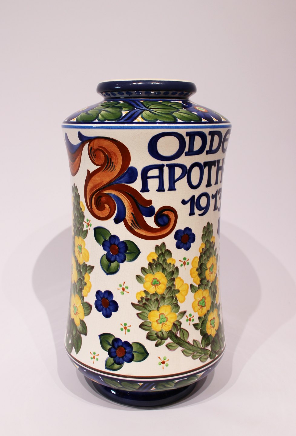 SoldLarge floor vase decorated in beautiful colors, no.: 958/411 by Aluminia.