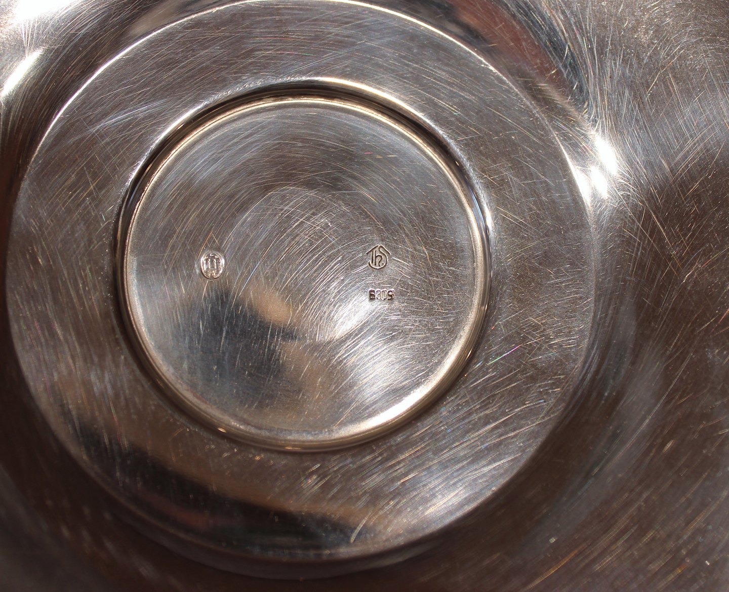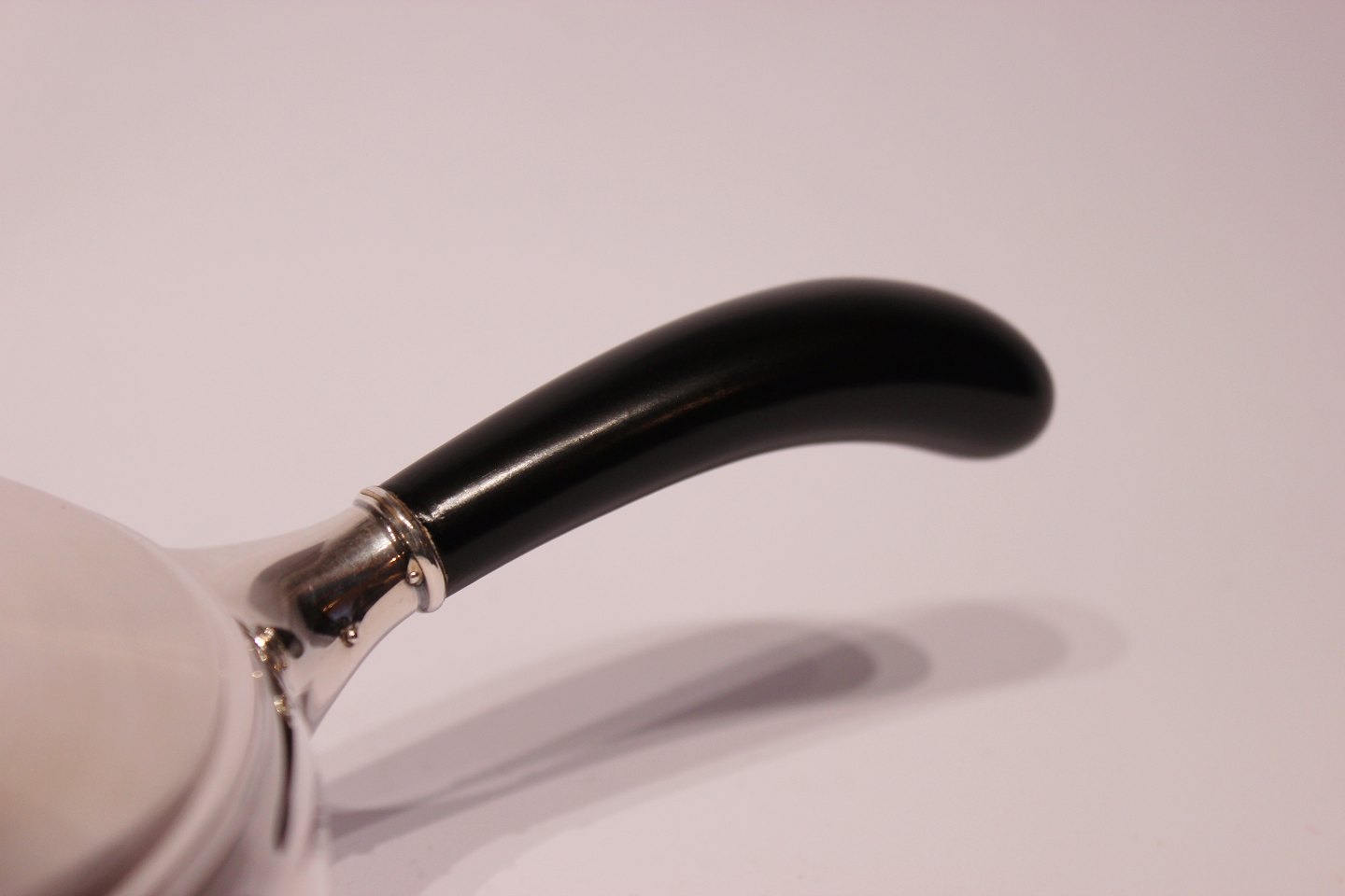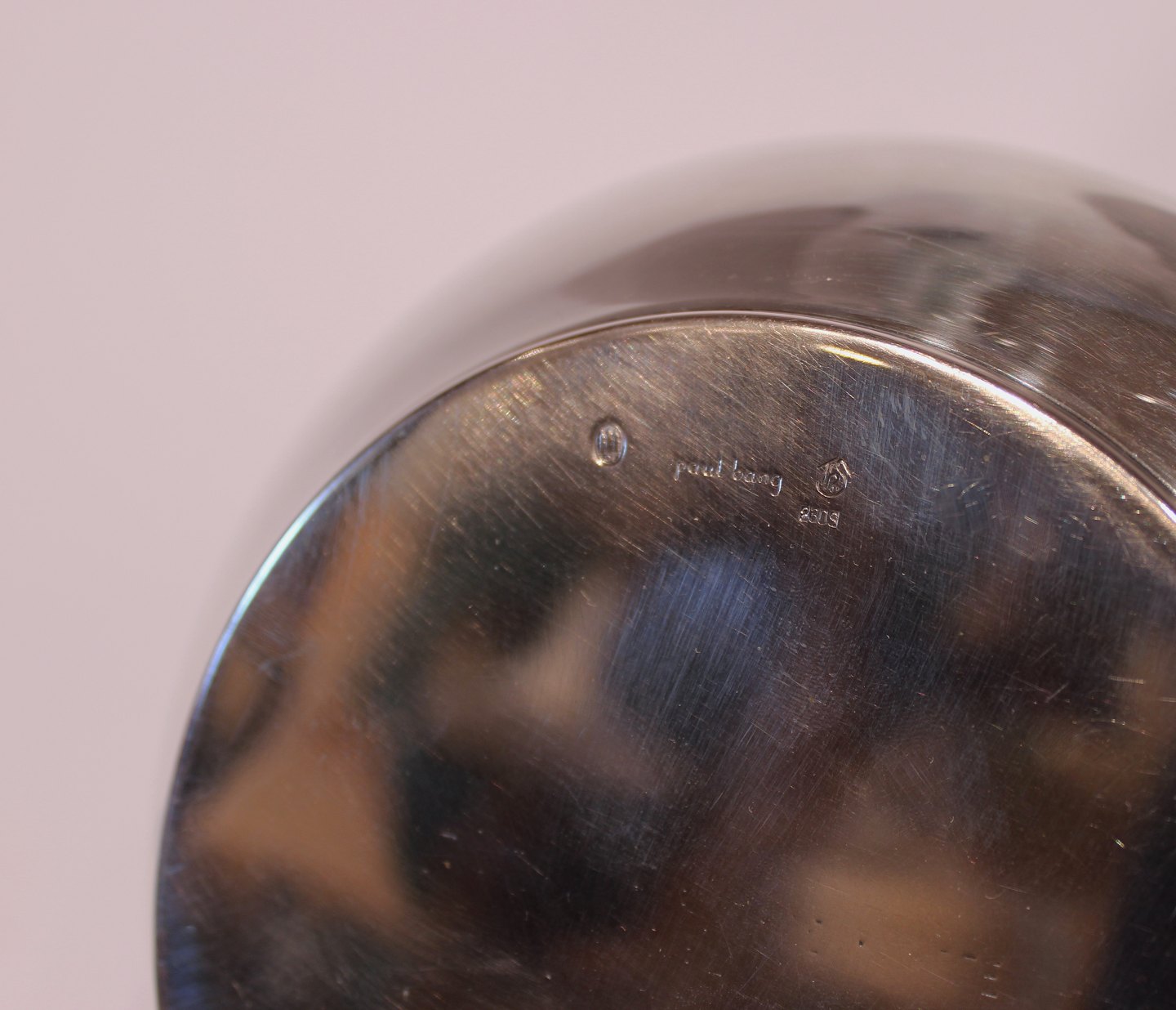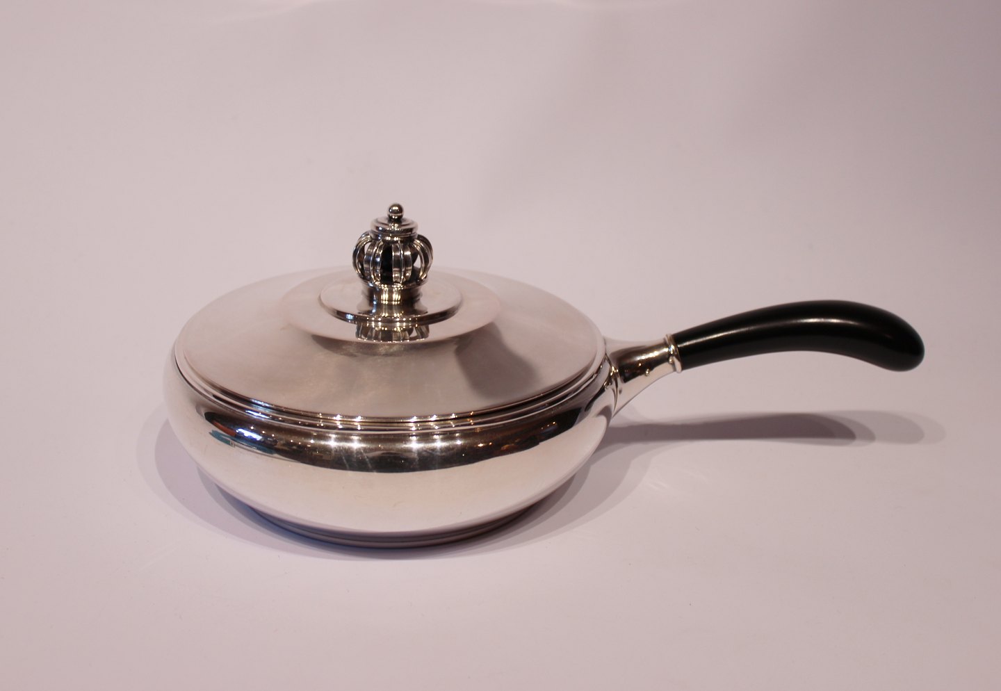 Serving bowl with lid and, ebony handle, of hallmarked silver, stamped Paul Bang.