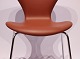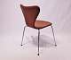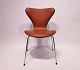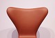 A pair of Seven chairs, model 3107, in cognac colored savanne leather, designed by Arne Jacobsen and Fritz Hansen.
