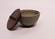 Ceramic bowl in light blue/turqouise colours and with brass lid by Arne Bang, no.: 118.