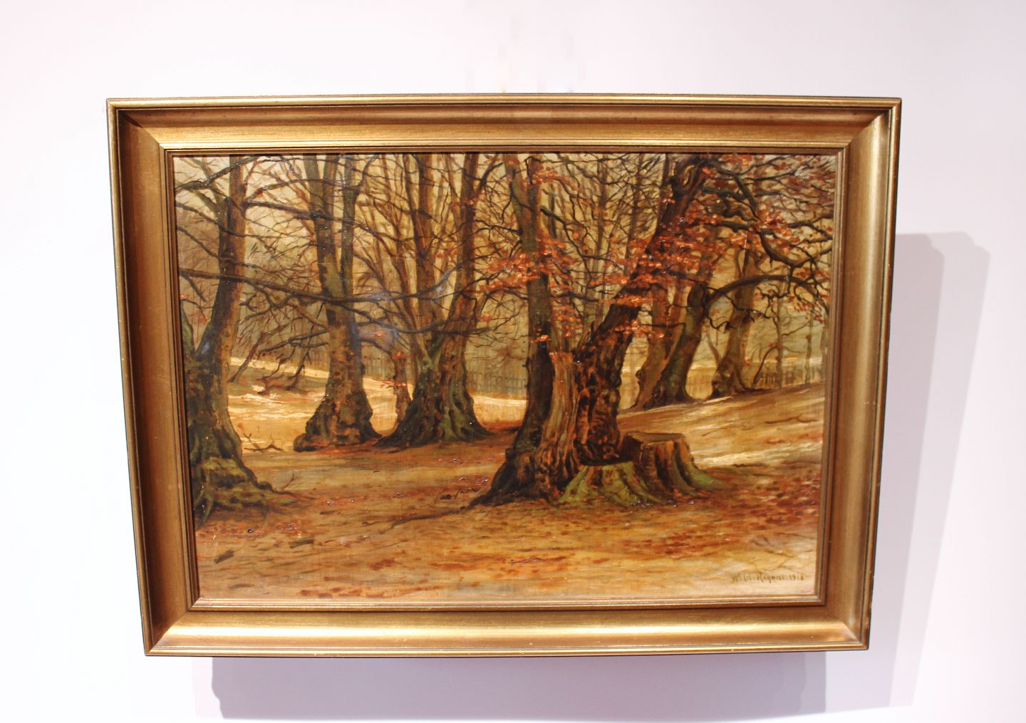 SoldOil painting of danish nature/forest signed by the danish artist Wald Kegnet. The painting is in great vintage condition.
