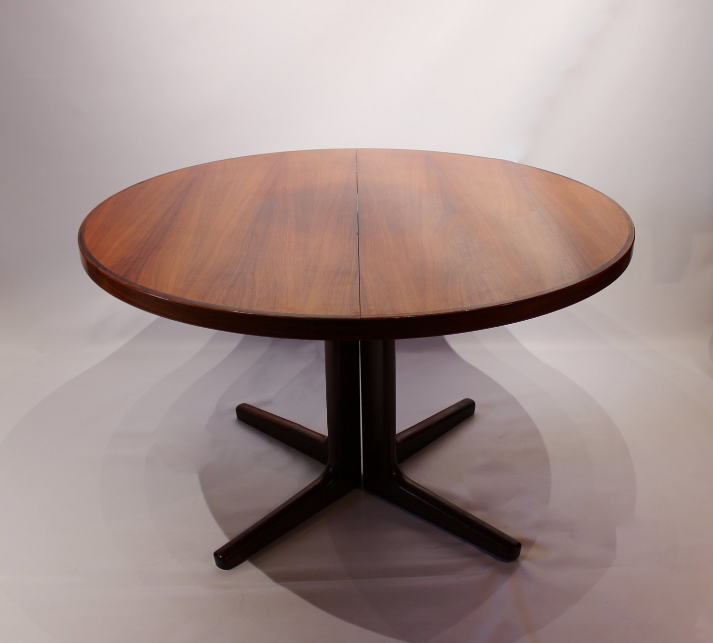 SoldRound dining table in rosewood with 2 extension leaves of danish design from Vejle furniture factory manufactured in the 1960s. The table is in great vintage condition.