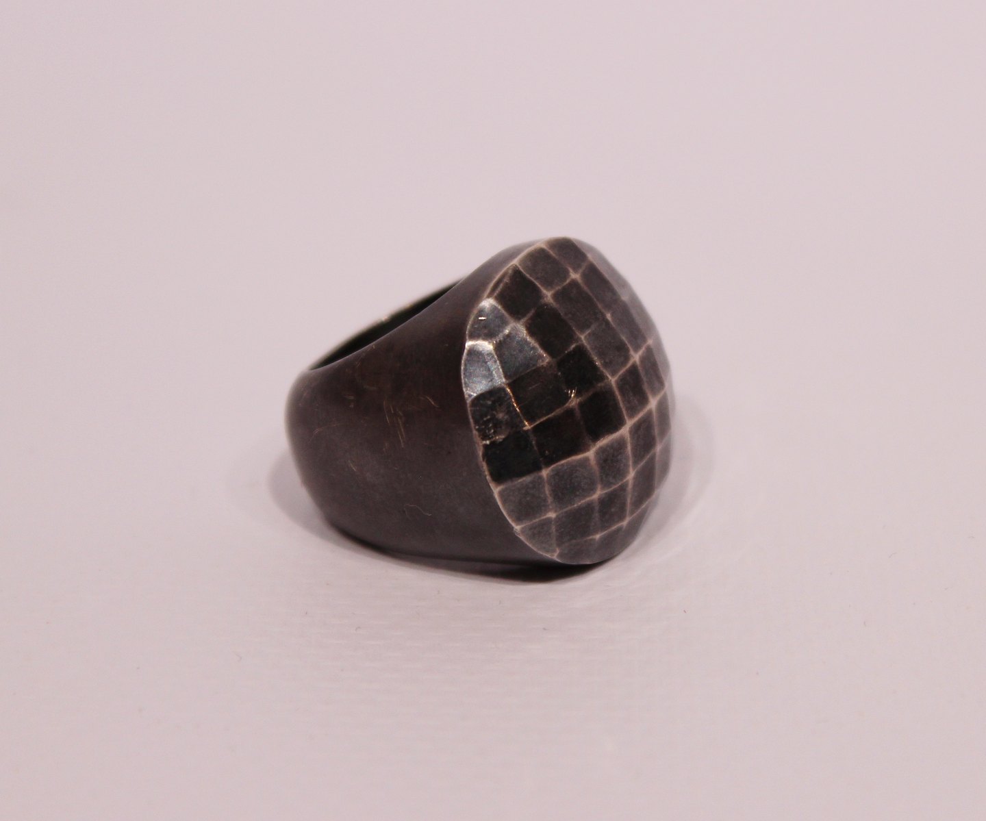 Kraftig ring i oxideret 925 sterling sølv, stemplet Minos.