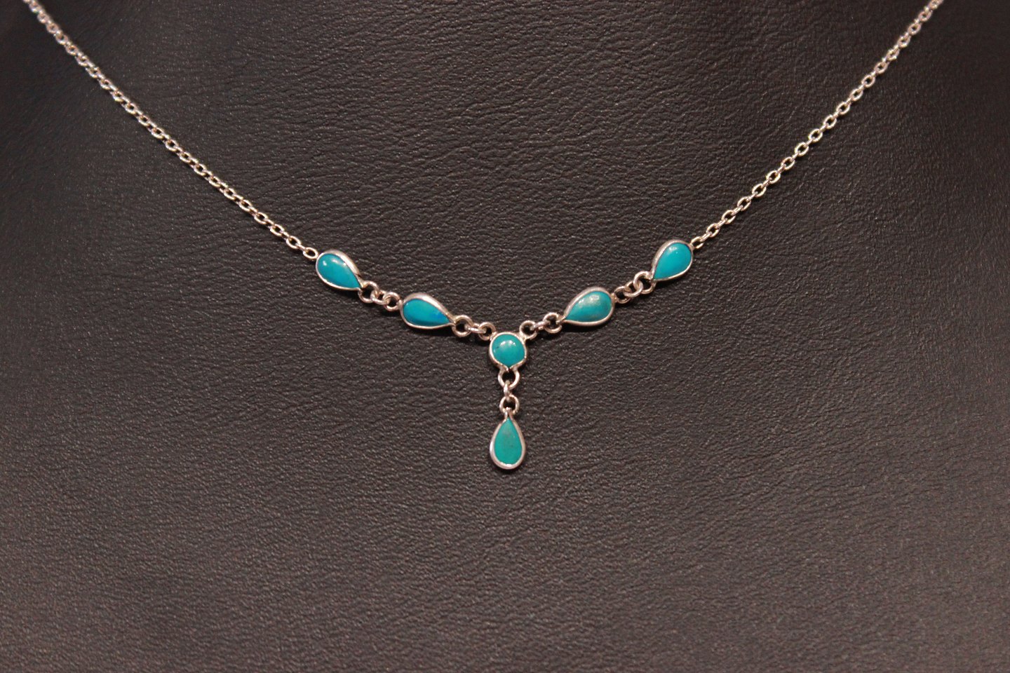 Halskæde dekoreret med blå sten og af 925 sterling sølv.