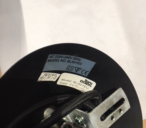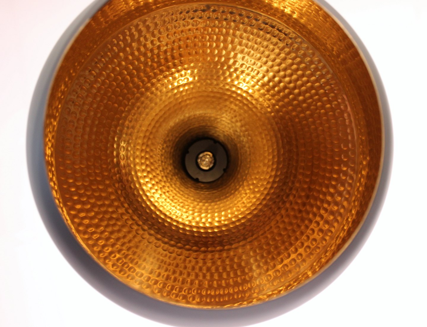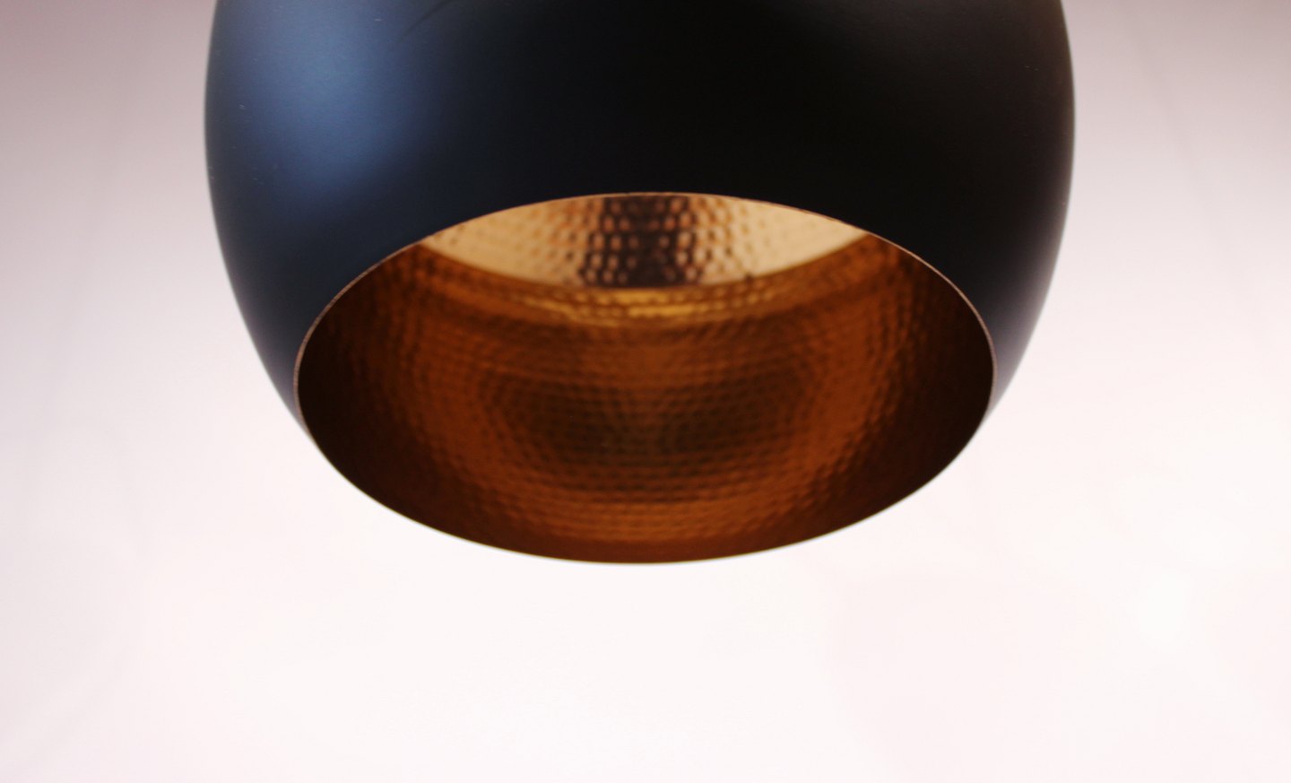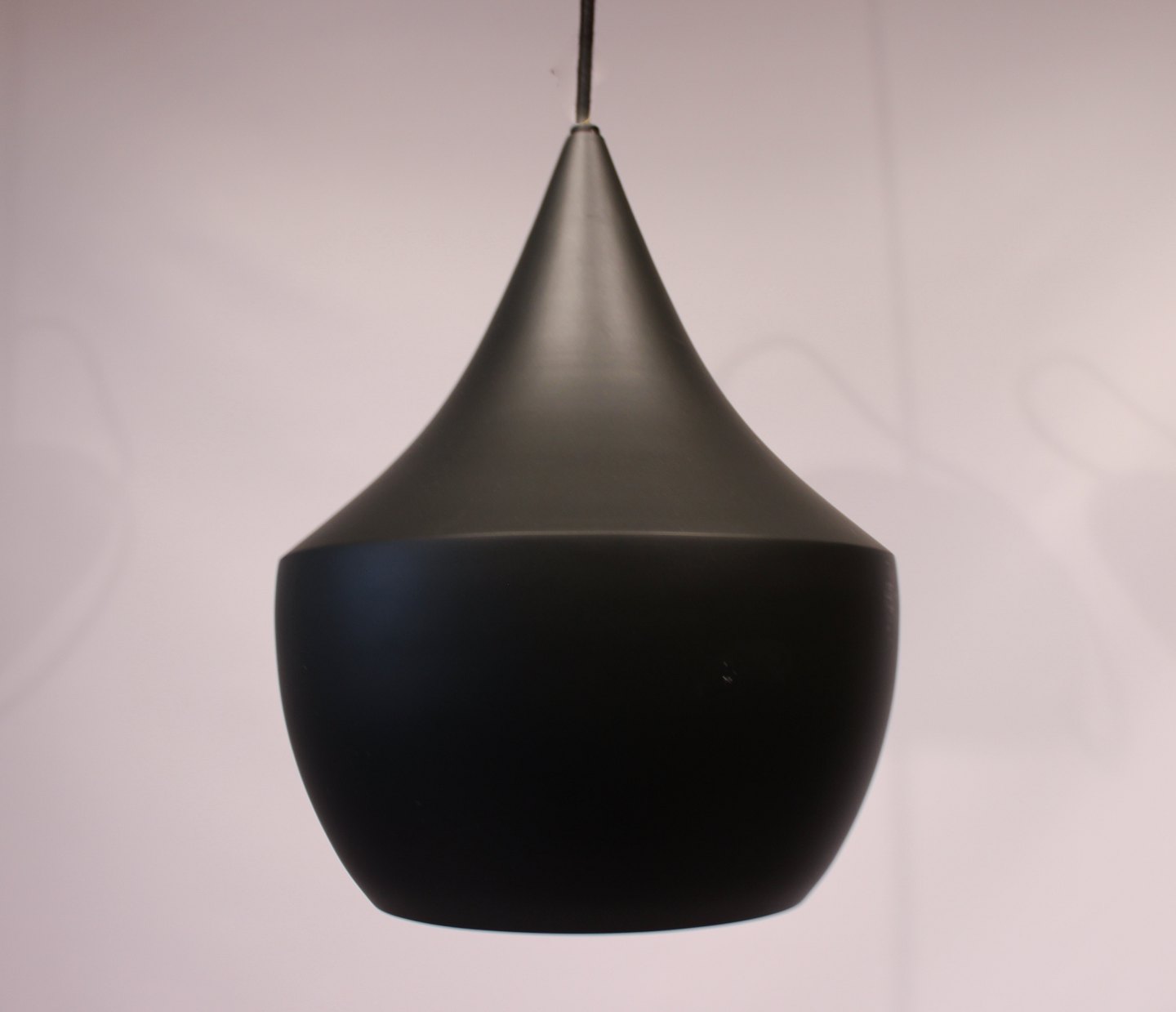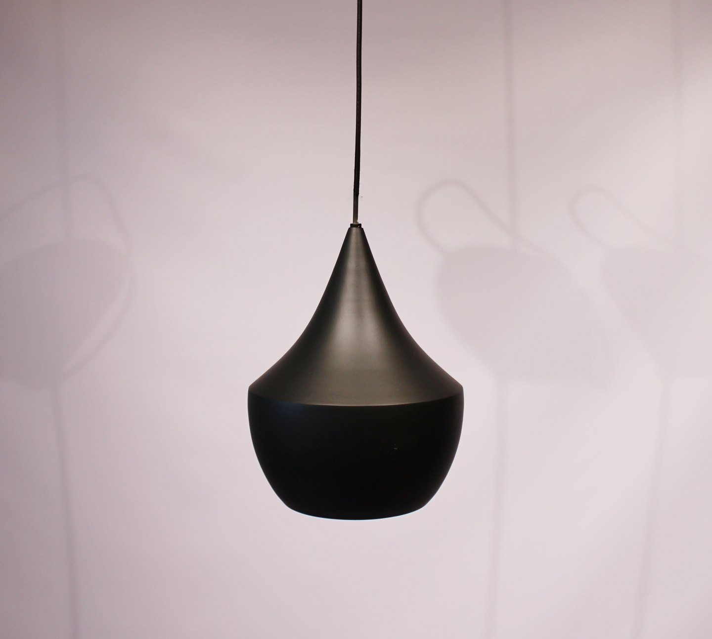 Beat pendant, model BLA01EU, in the color black and in brass designed by Tom Dixon.