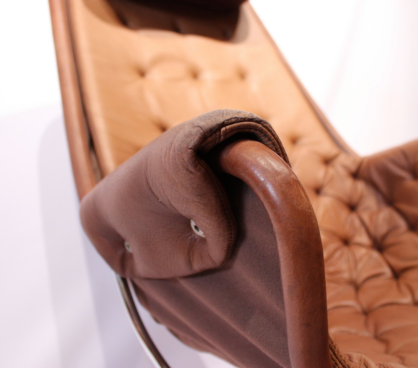 SoldEasy chair, model Jetson 69, originally upholstered in brown patinated leather designed by Bruno Mathsson in 1966 and manufactured by DUX in the 1960s.