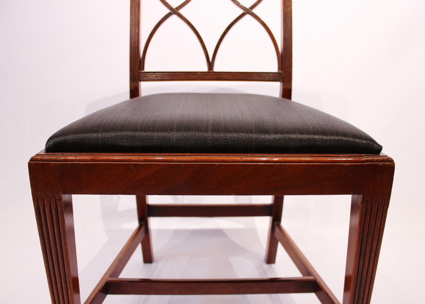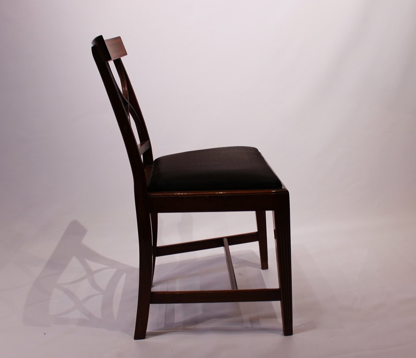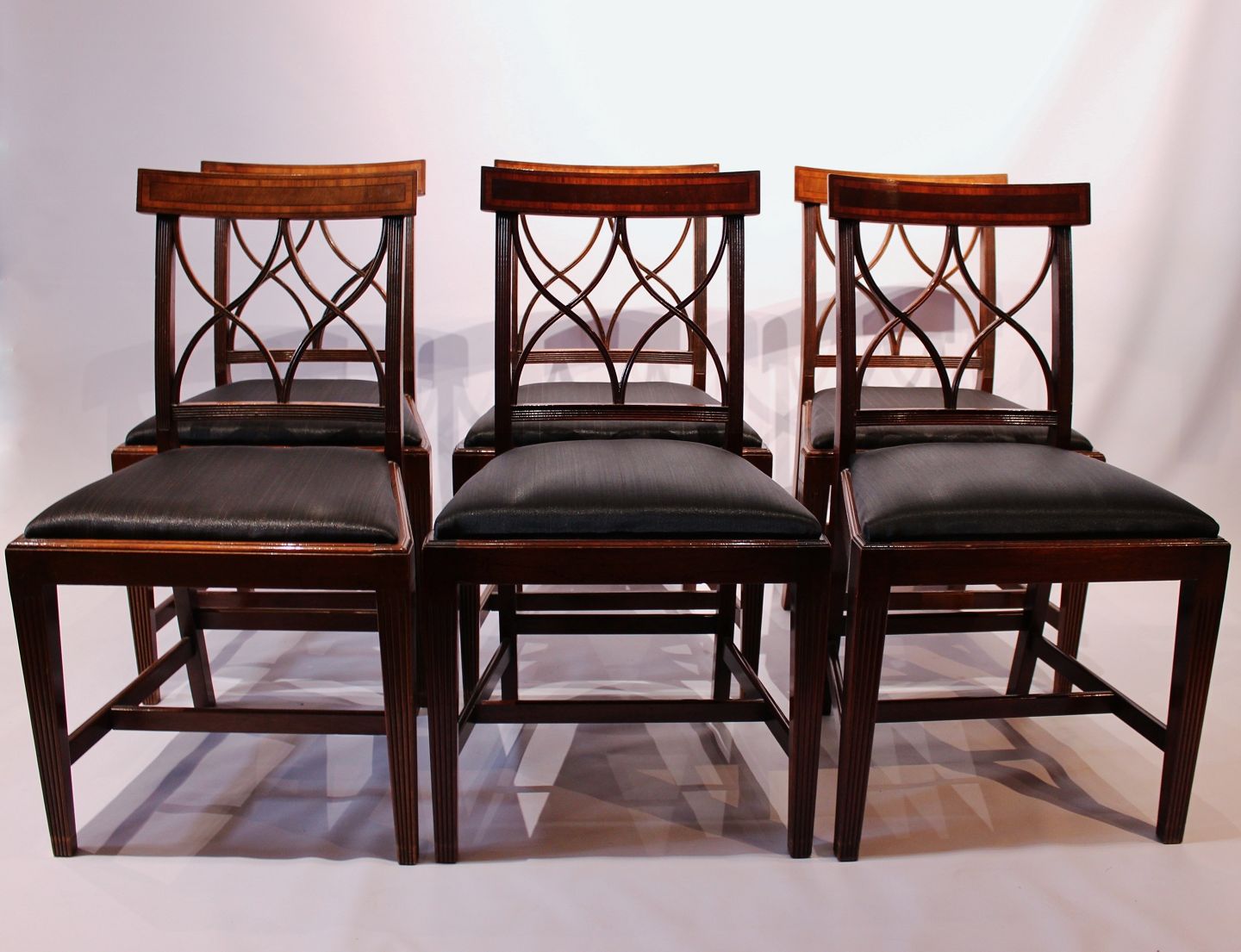 Set of 6 dining room chairs in the style of Hepplewhite and in mahogany and horse hair, from around the 1880s.