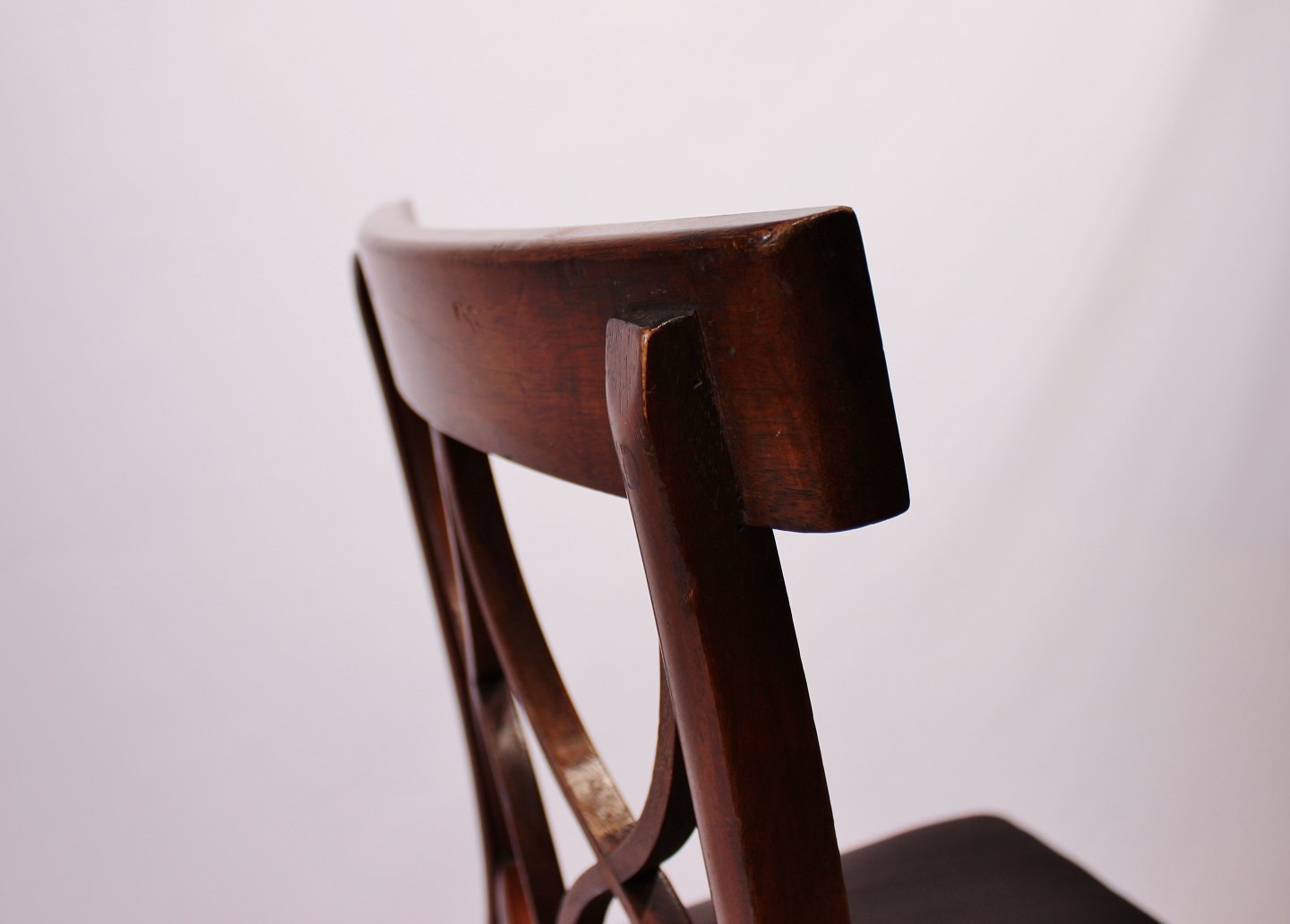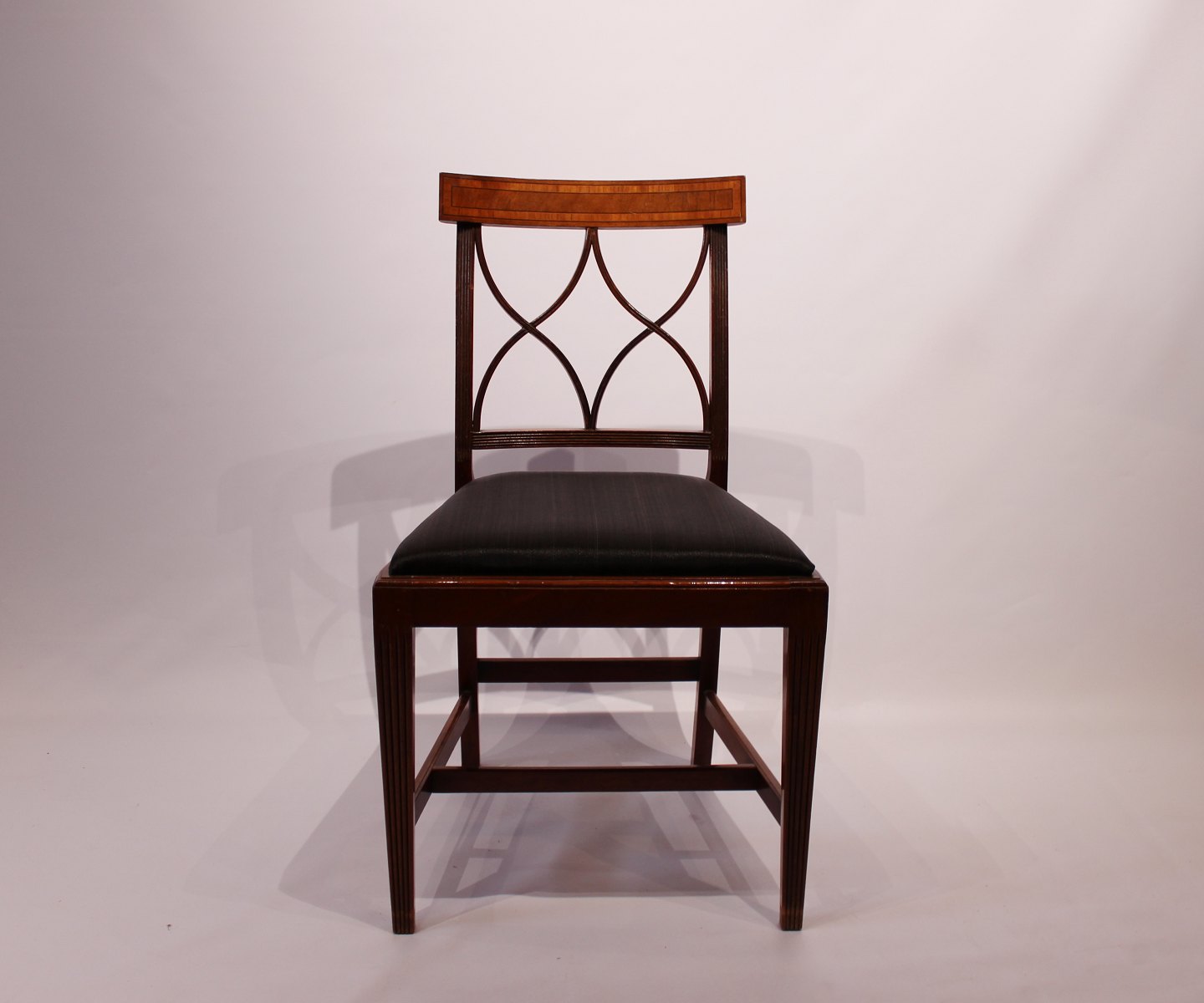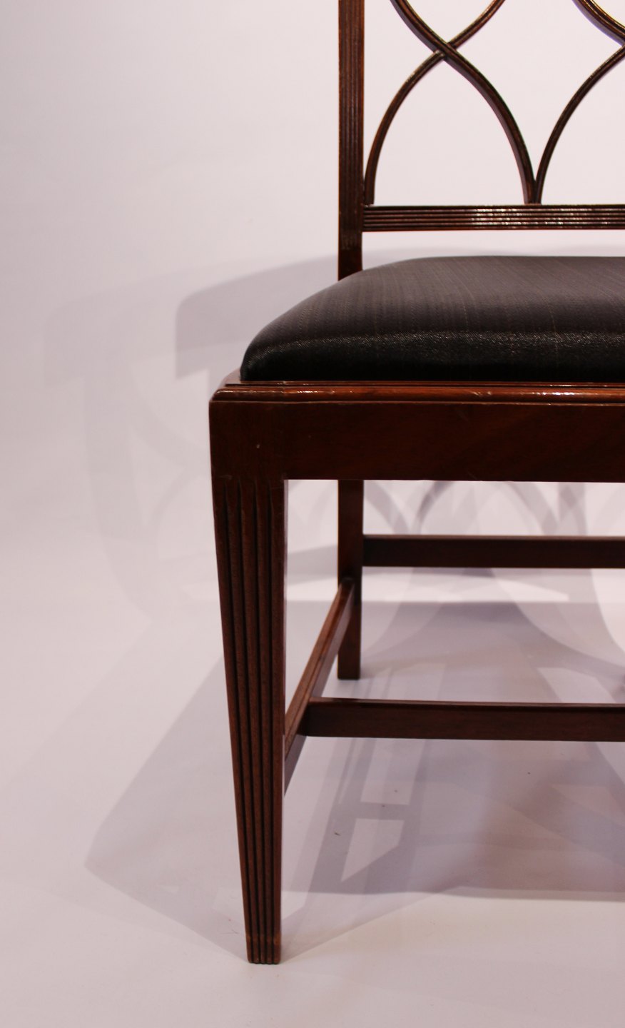 Set of 6 dining room chairs in the style of Hepplewhite and in mahogany and horse hair, from around the 1880s.