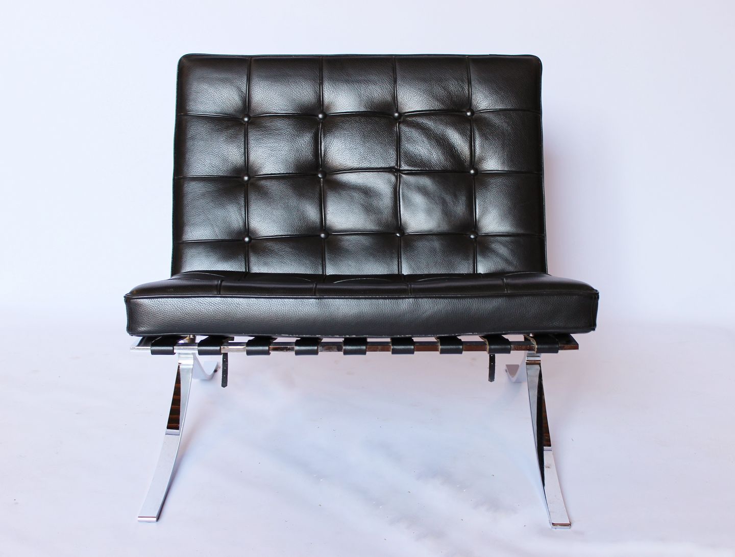 Techno Barcelona easy chair in black leather and frame of chrome of Italian design.