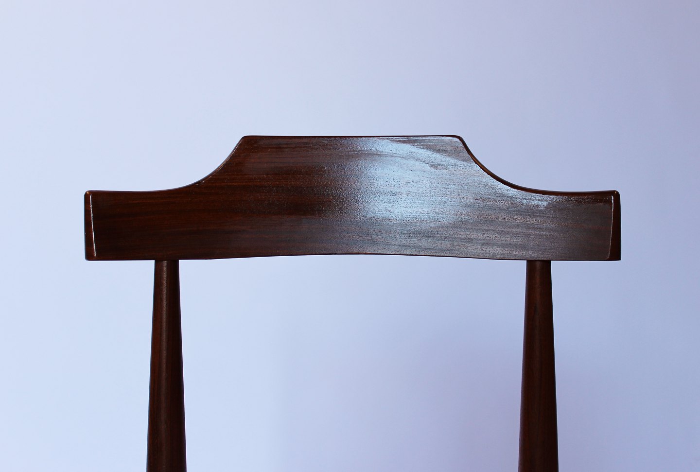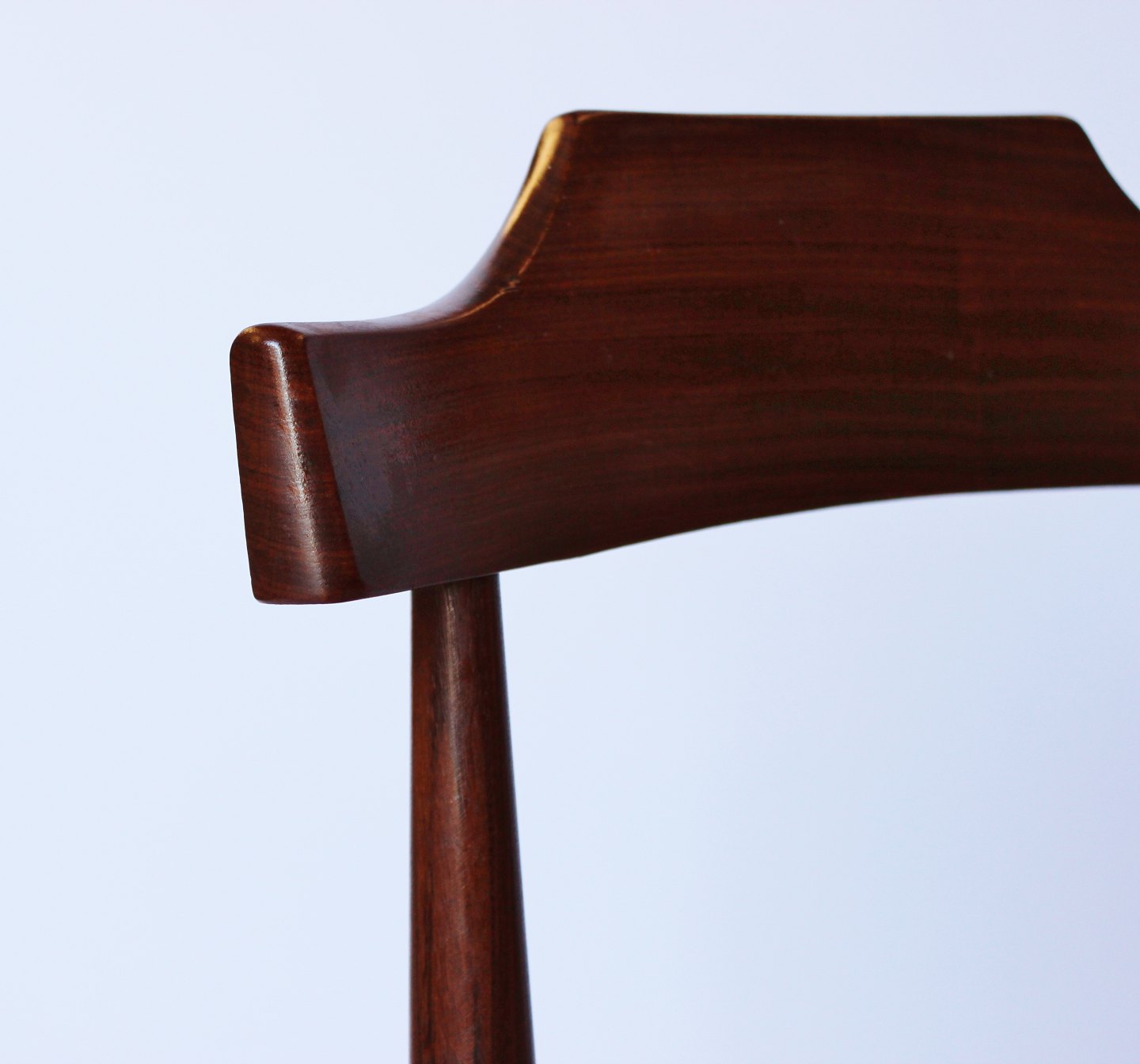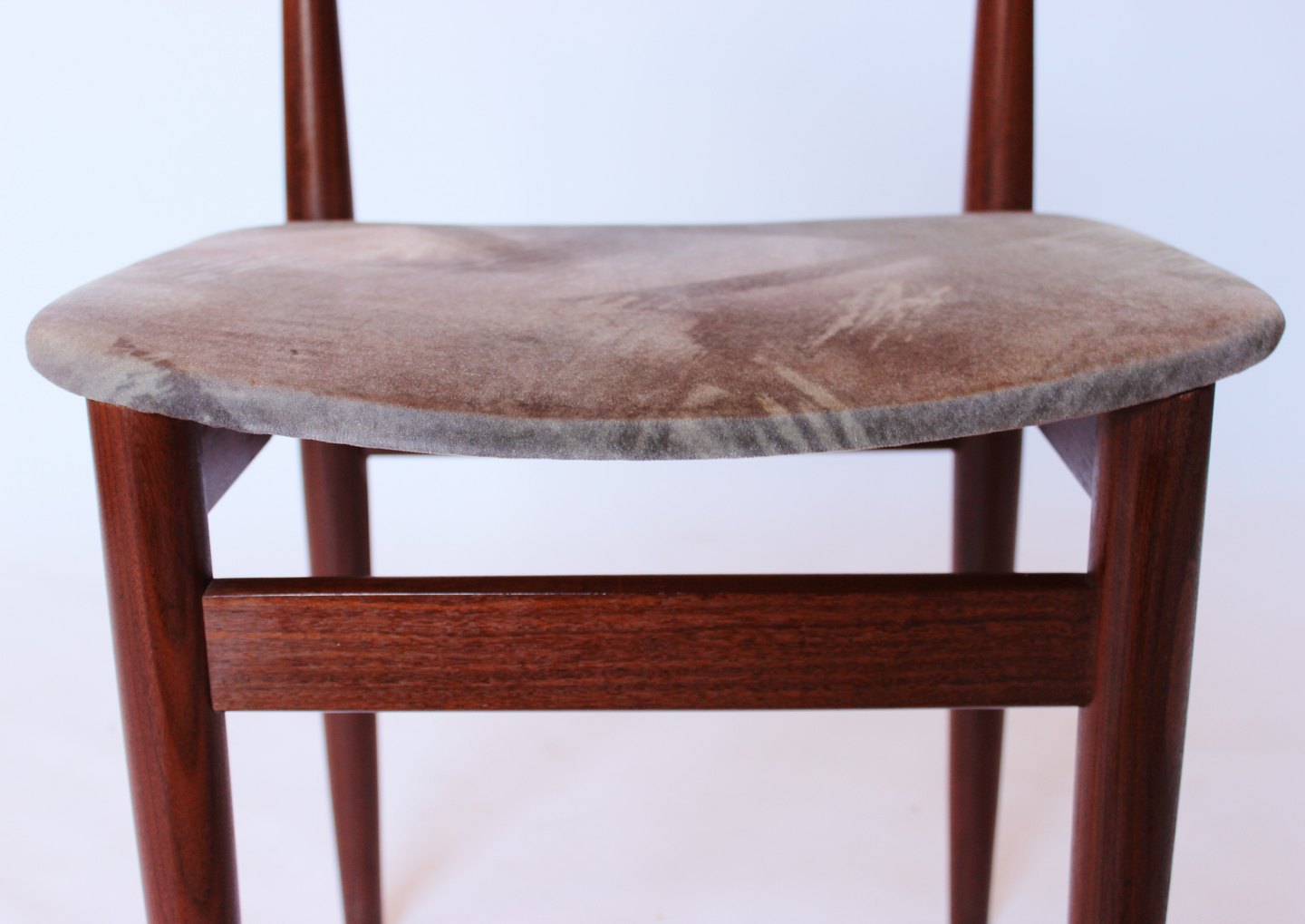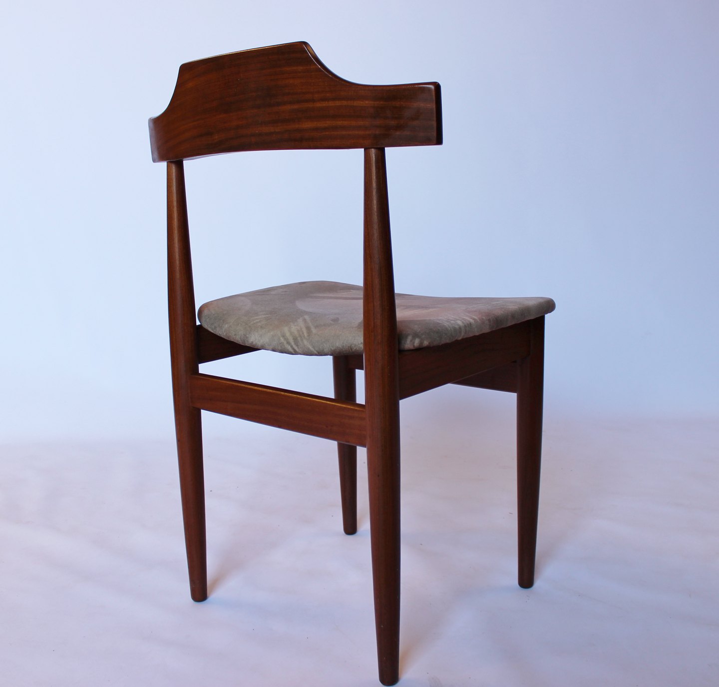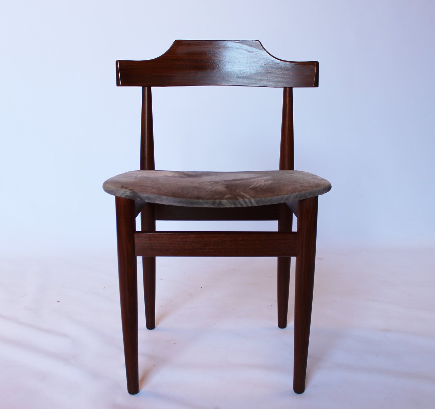 SoldSet of four dining chairs in rosewood and grey fabric designed by Hans Olsen from the 1960s. The chairs are in great vintage condition.