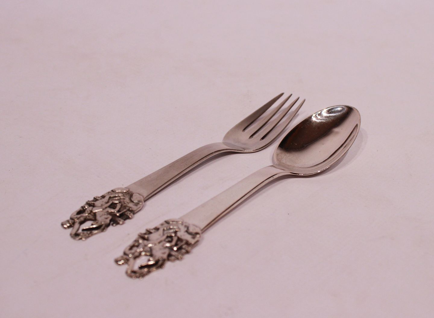 SoldSet of children's spoon and fork with motif of H.C. Andersen's fairytale "Clumsy Hans".