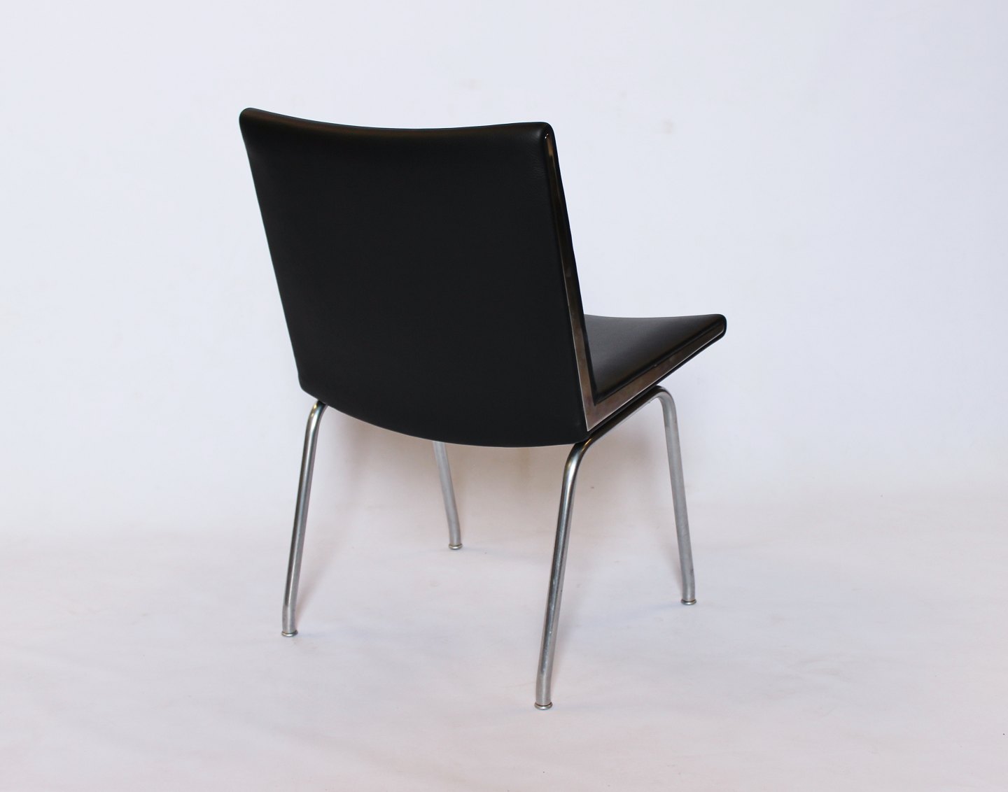 SoldSet of 4 "Airport-chairs", model AP37, designed by Hans J. Wegner and manufactured by AP Stolen in the 1950s. The chairs are newly upholstered in black classic leather.