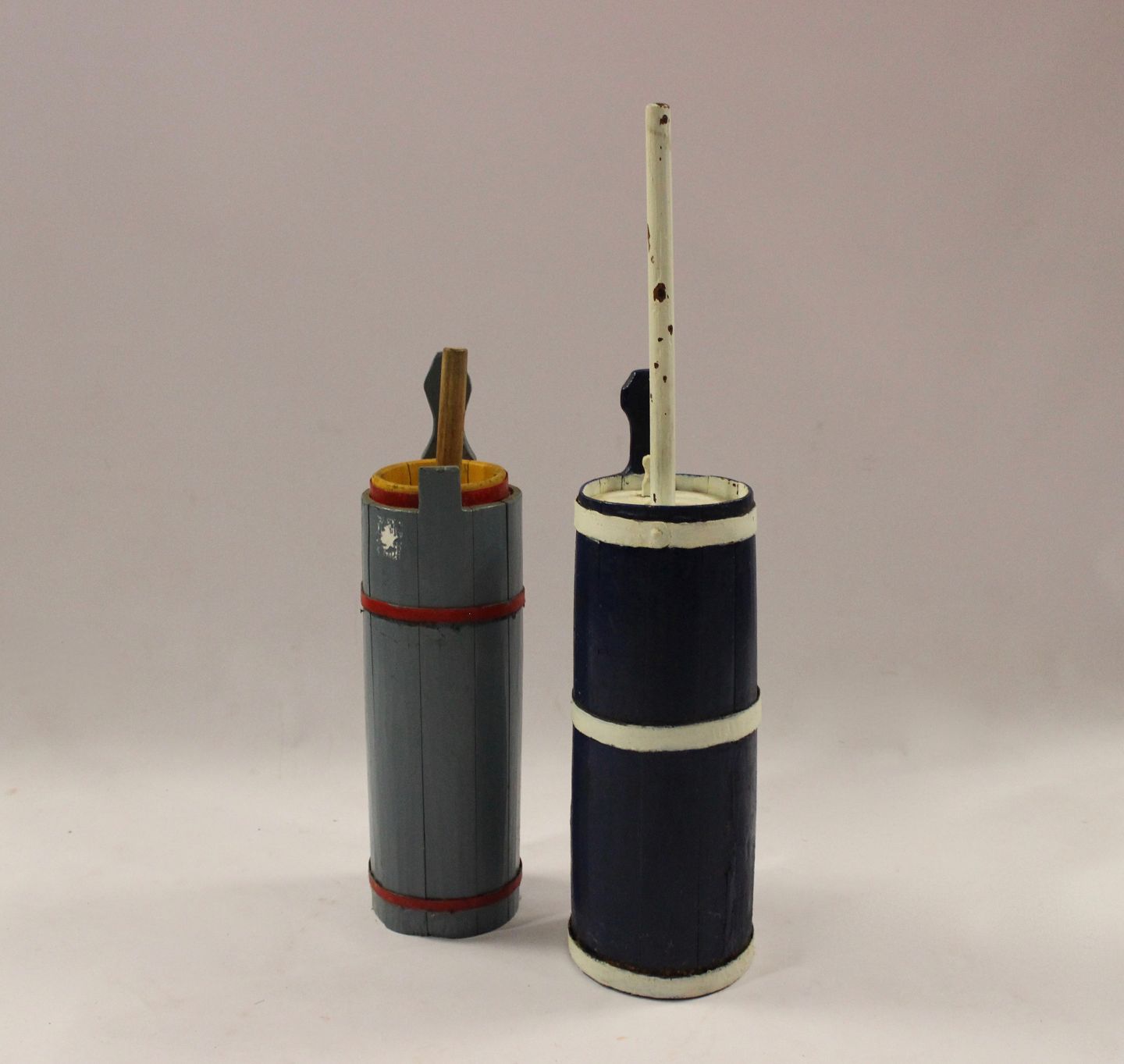 Et par antikke smørkærner i smukke blå farver. Begge er i flot antik stand.