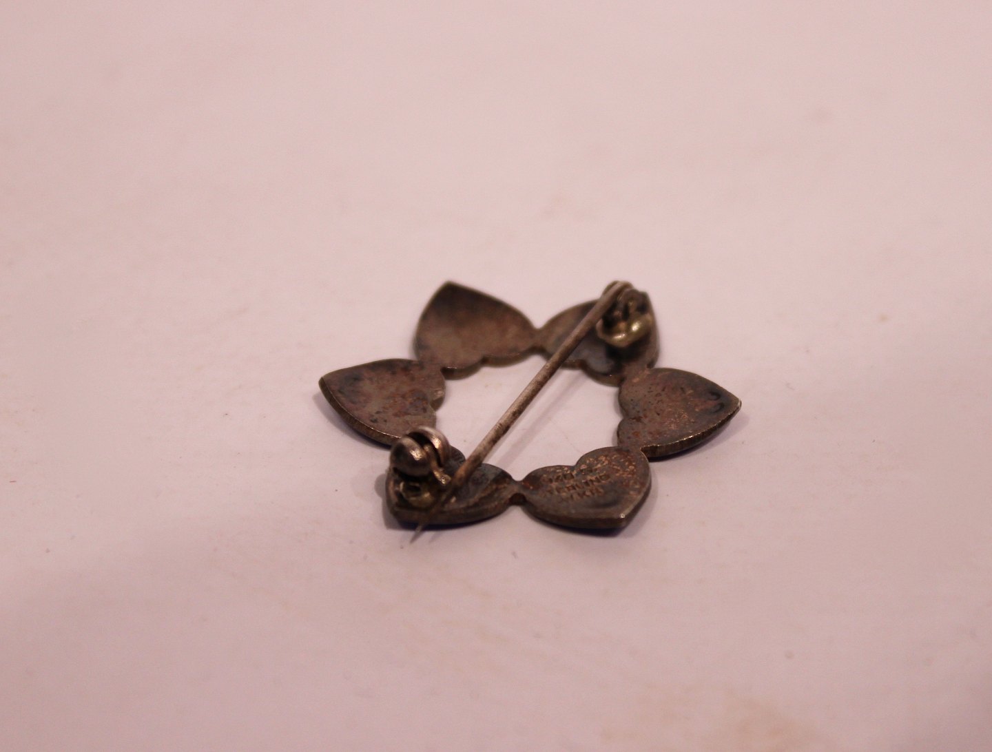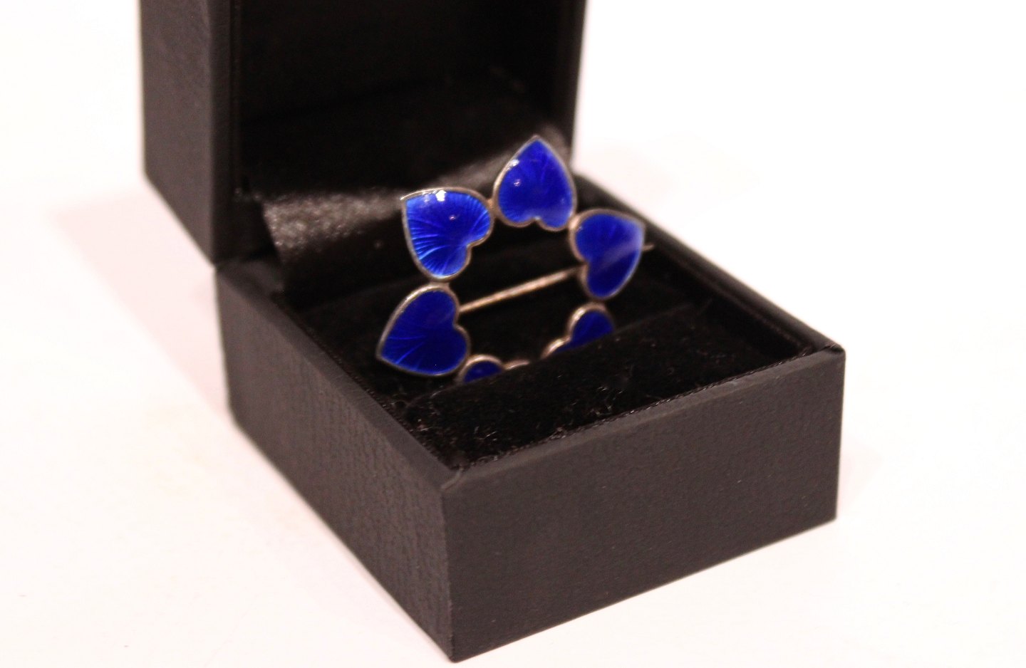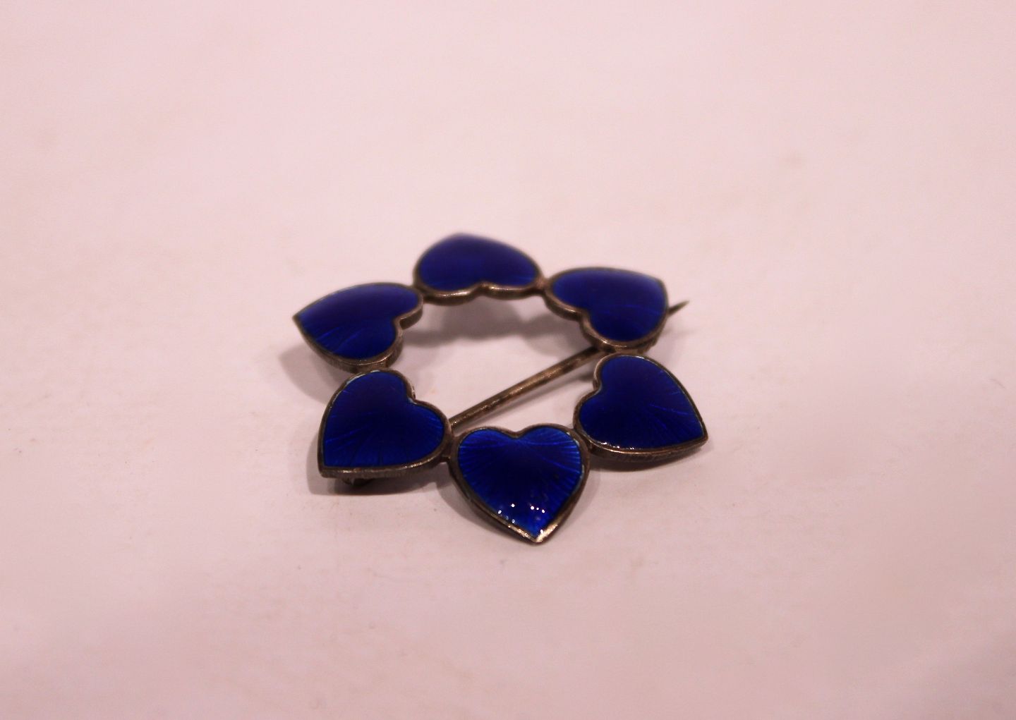 SoldBrooch decorated with blue hearts, stamped WKK of 925 sterling silver.