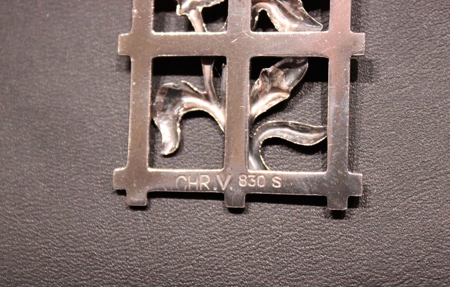 Stort vedhæng stemplet CHR. V. i 830 sølv. Lignende kæde kan købes separat.