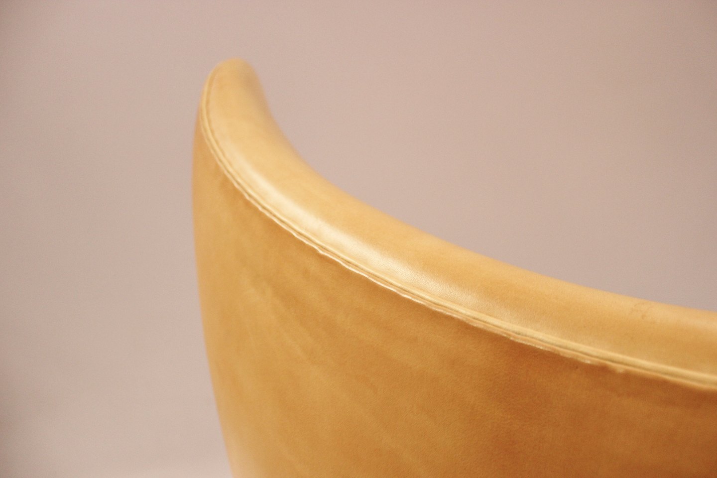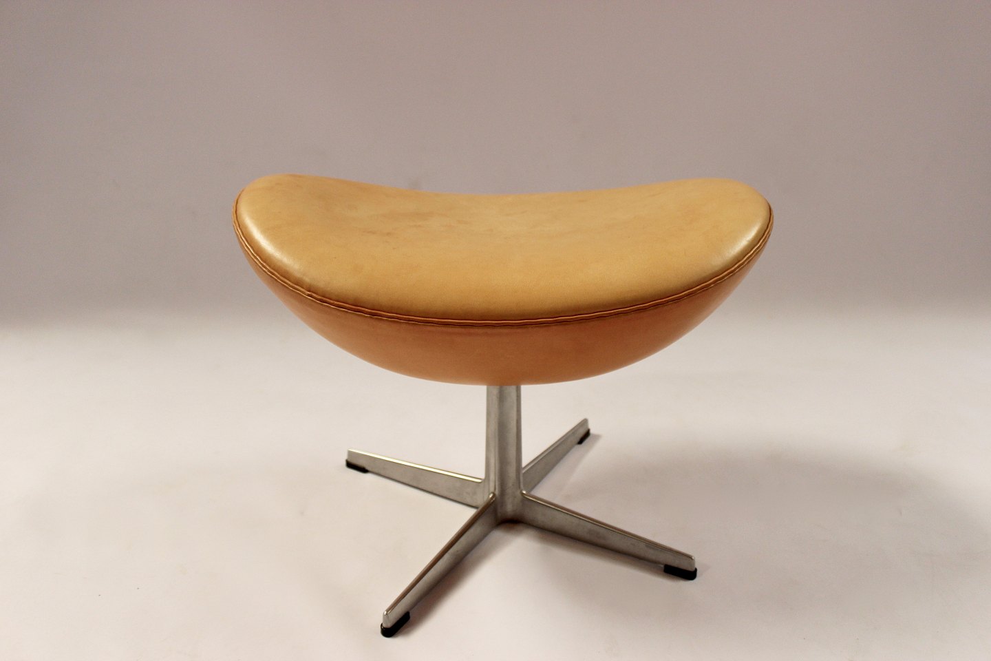 Arne Jacobsen designed the Egg for the lobby of the SAS Royal Hotel in Copenhagen, where it became one of the most iconic pieces of furniture in modern design history. The chair is known for its innovative shape that envelops the user and provides a sense of privacy and comfort. Designed as an accessory part of the set, the stool is a perfect companion to the chair, providing additional relaxation.