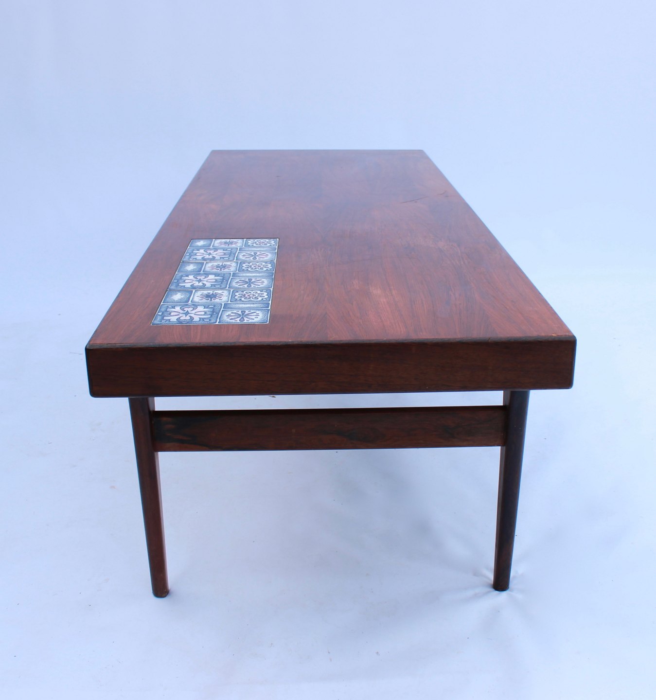 Coffeetable in rosewood with Royal Copenhagen tiles designed by Johannes Andersen and manufactured by Silkeborg Furniture Factory in 1960s. The table is in great vintage condition.