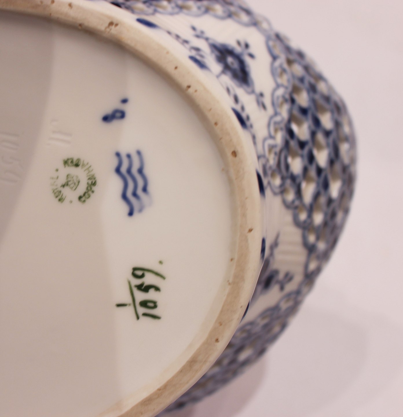 SoldRoyal Copenhagen blue fluted lace fruit bowl, no.: 1/6501. The bowl is in great vintage condition.
