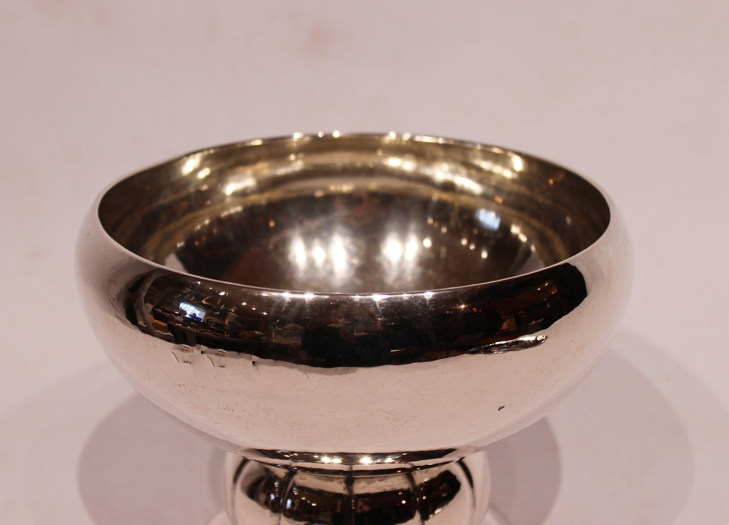 Skål på fod af tretårnet sølv og enkelt dekoreret. Skålen er i flot brugt stand.