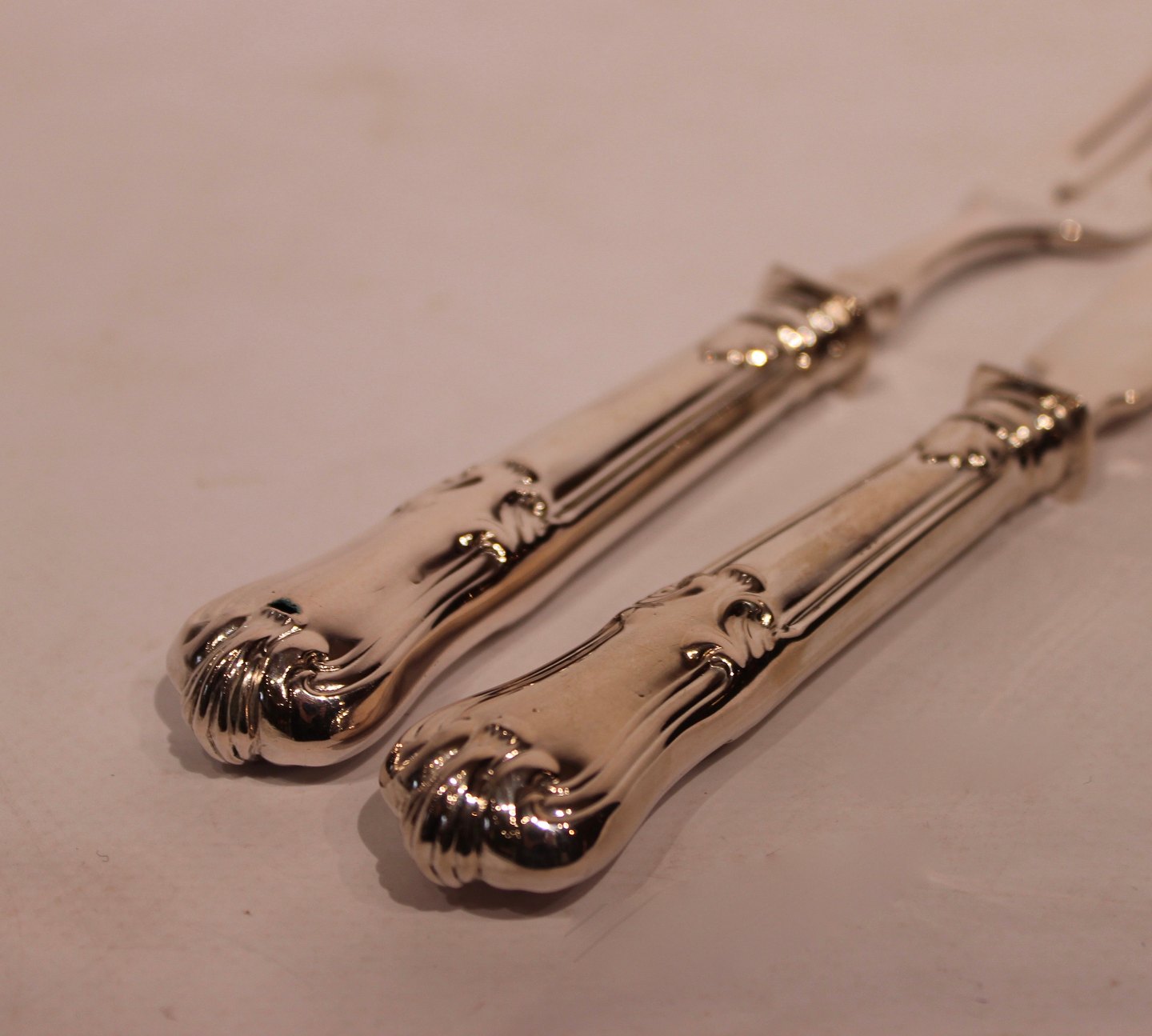 Fiskebestik i andet mønster af tretårnet sølv. Spørg for antal på lager.