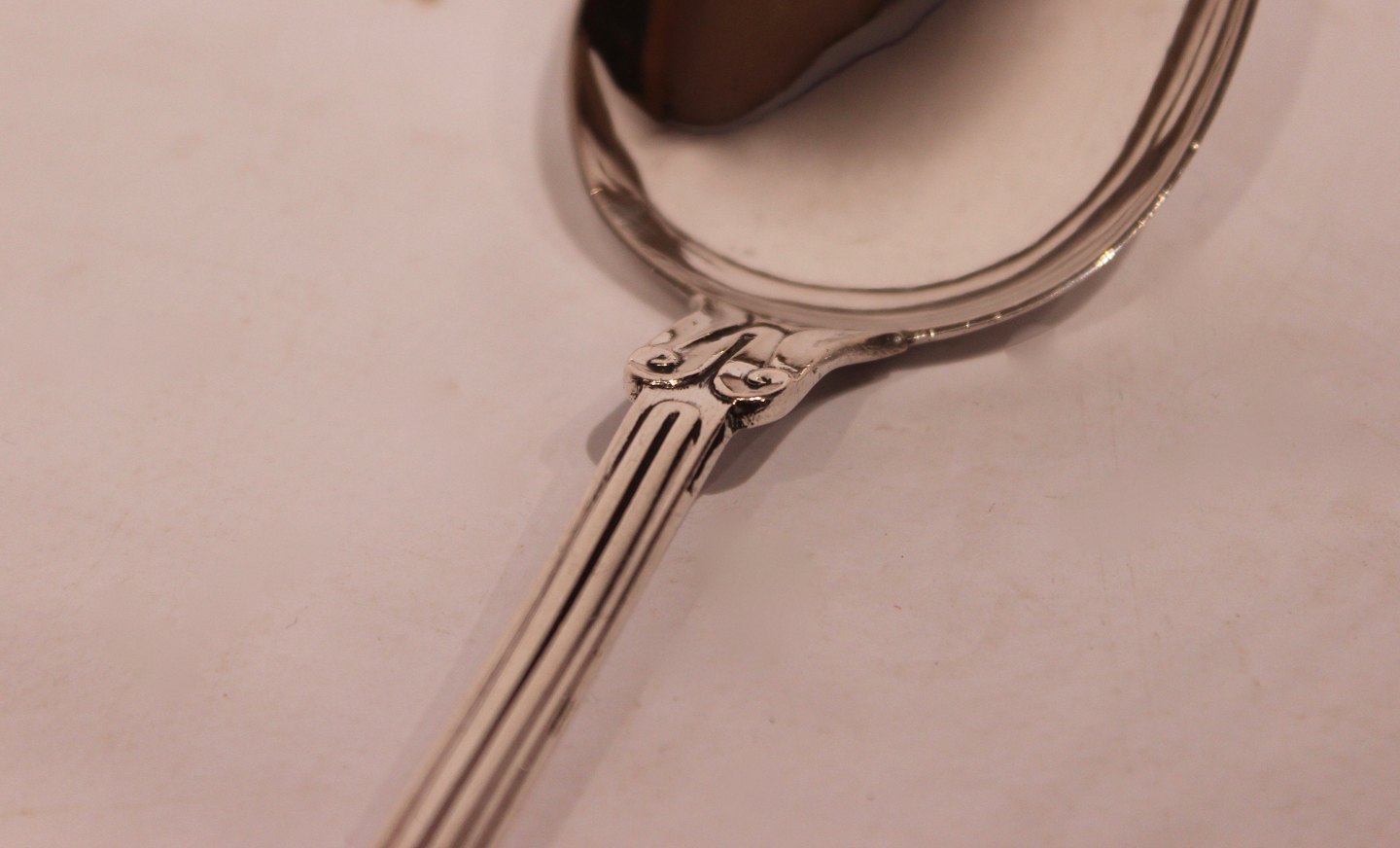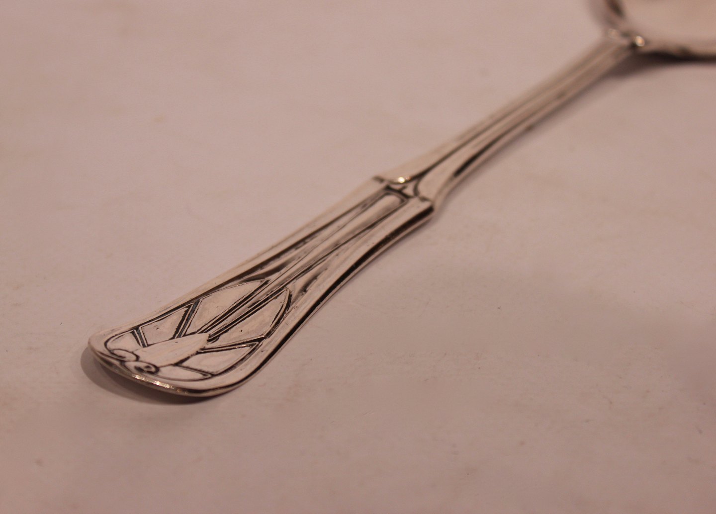 Mindre serveringsske i andet mønster af tretårnet sølv.