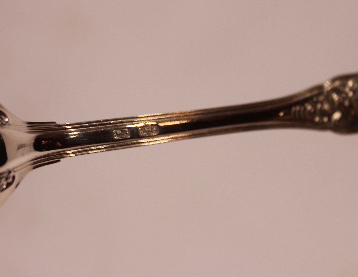 View the price in the text descriptionDinner spoon and teaspoon in the Rosenborg pattern by A. Michelsen and made of three-towered silver.