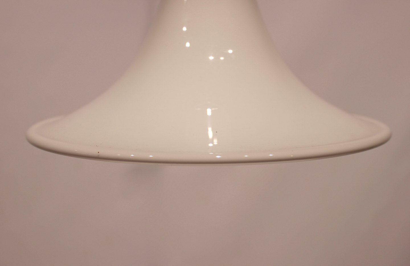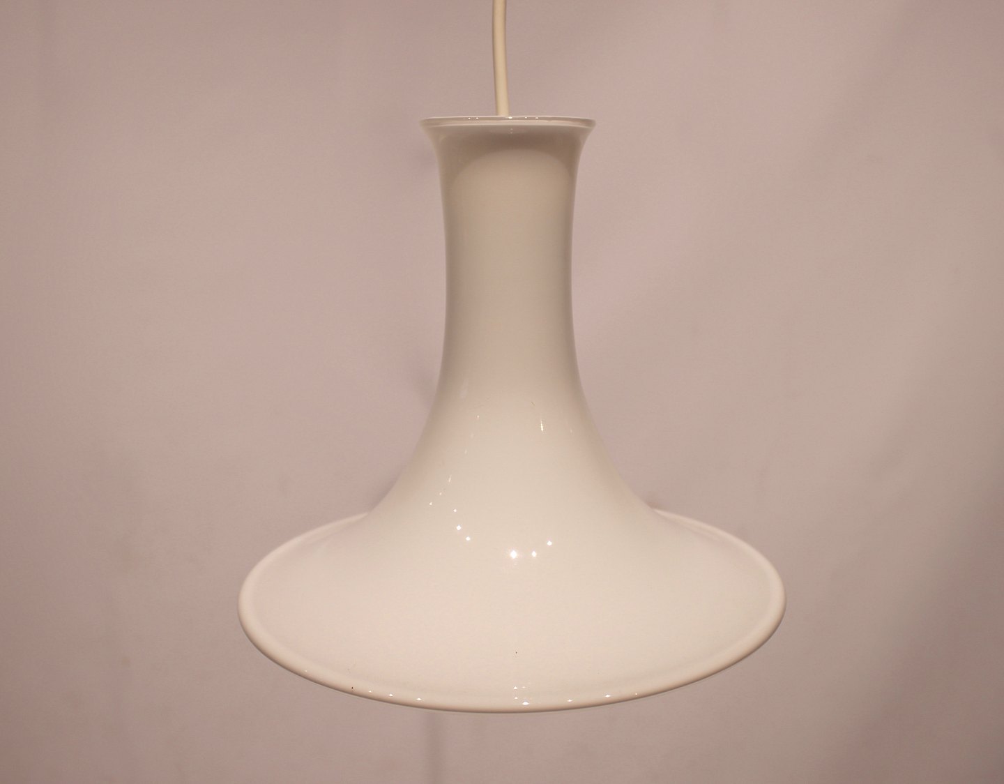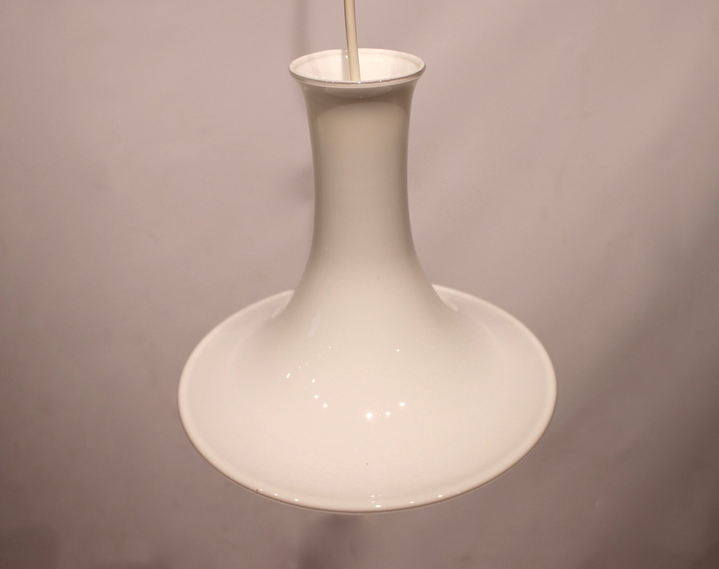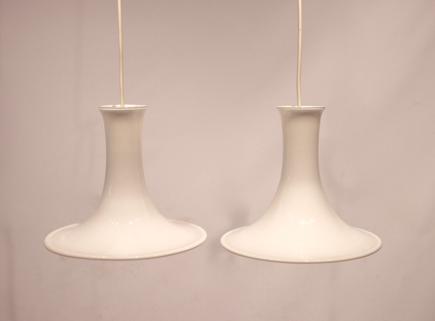 SoldA pair of small "Mandarin" pendants designed by Michael Bang for Holmegaard/Royal Copenhagen. The pendants are of white opaline mouth blown glass from the 1980s.