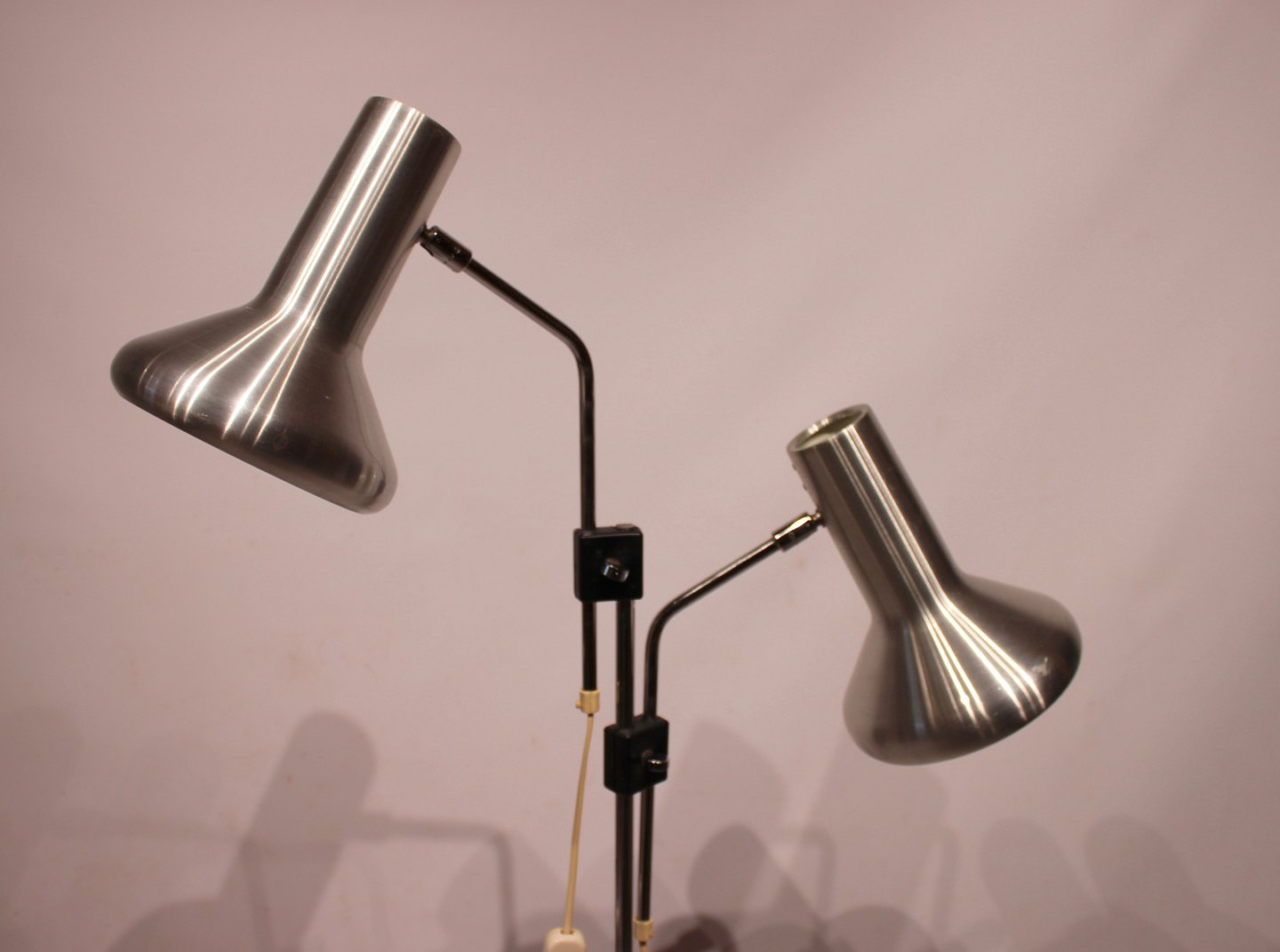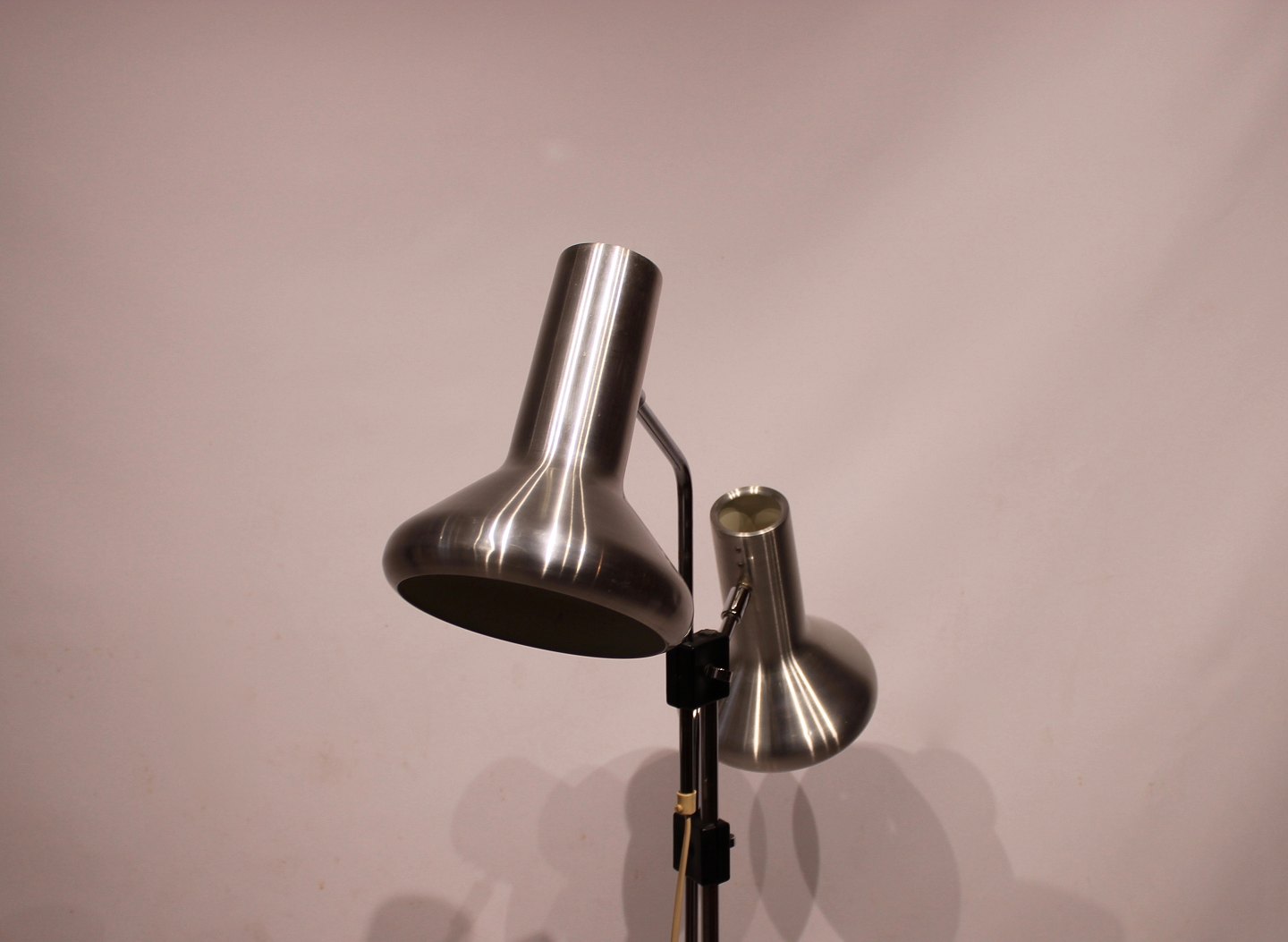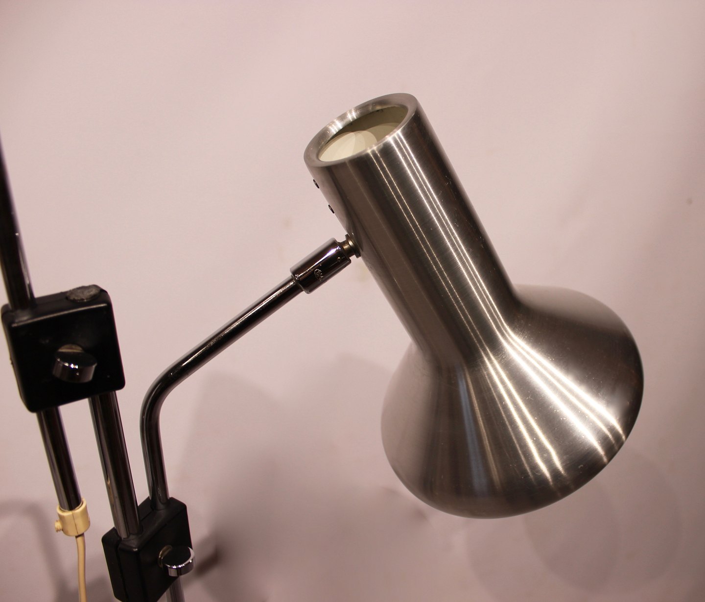 Standerlampe af stål og dansk design fra 1960erne. Lampen er i flot brugt stand.