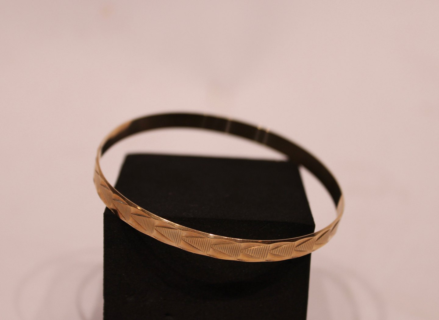 SoldBangle of 8 ct. gold with simple pattern, stamped AA.