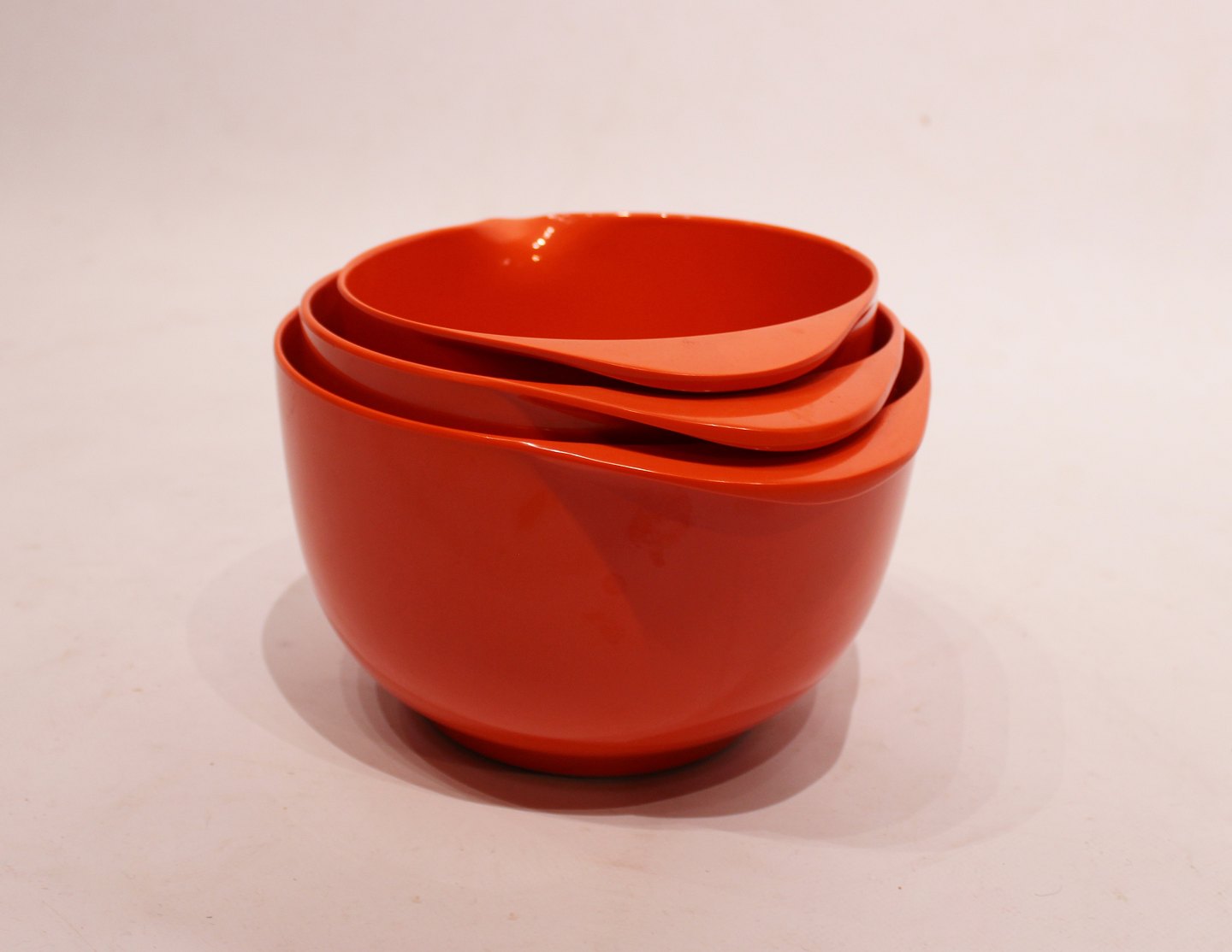 Sæt af Magrethe skåle af Rösti i orange og forskellige størrelser fra 1960erne.