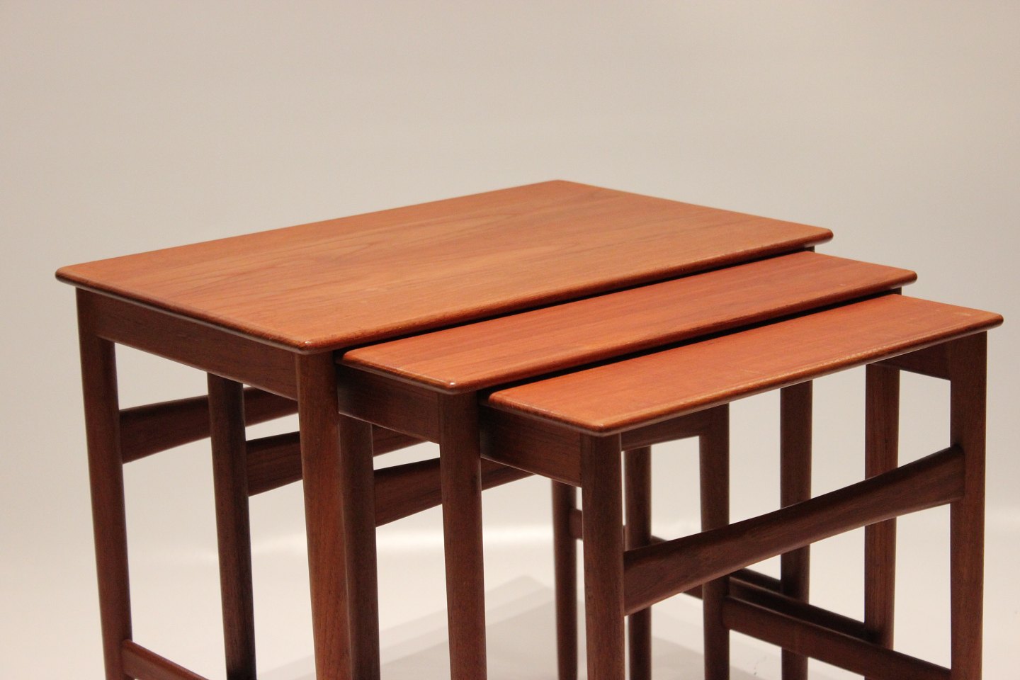 SoldSet of nesting tables in teak designed by Hans J. Wegner and from the 1960s. The tables are in great vintage condition.