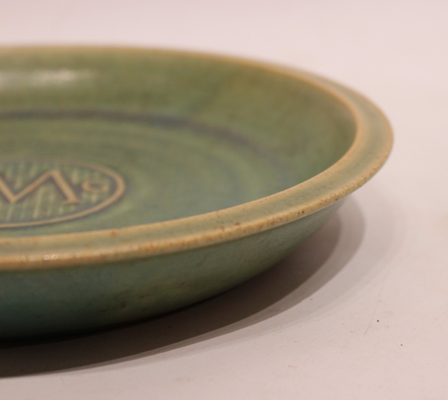 SoldCeramic dish in green colors by Saxbo from the 1960s.