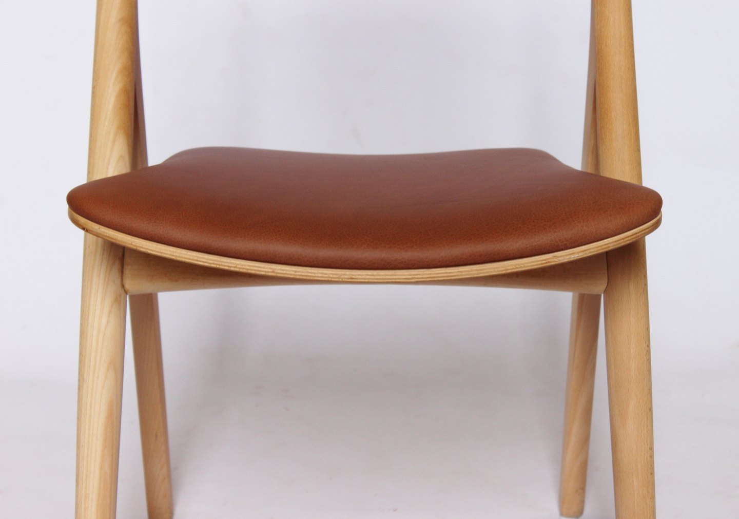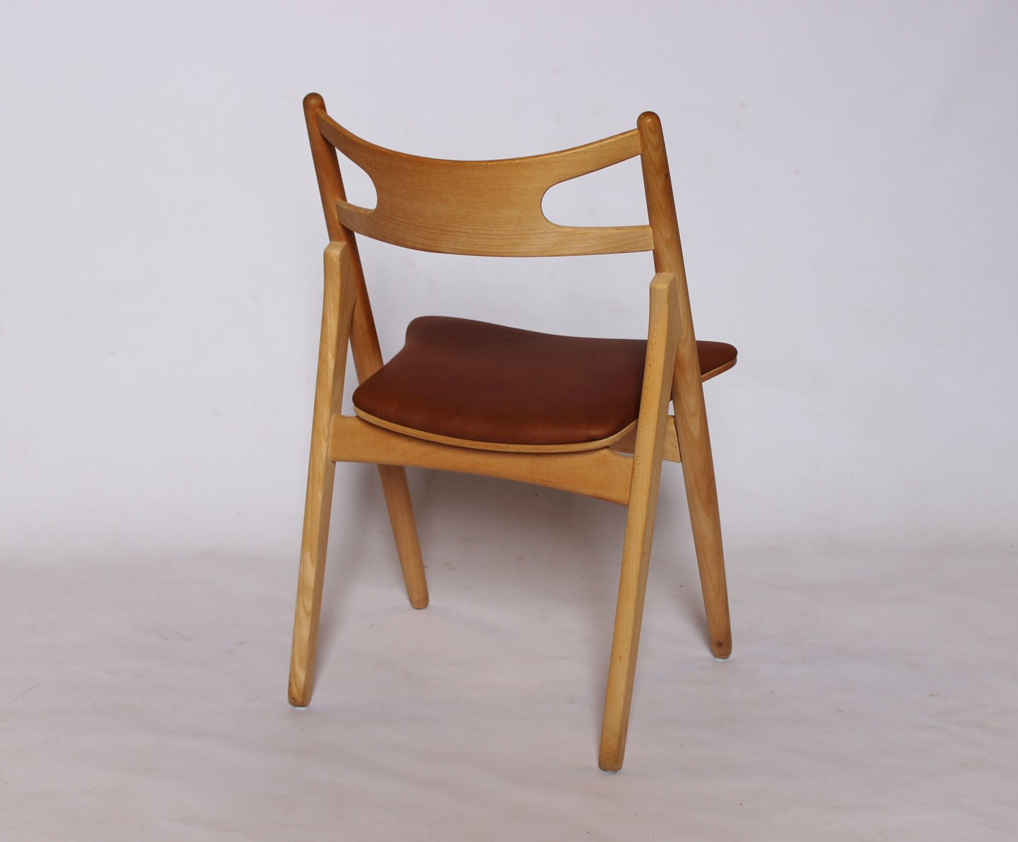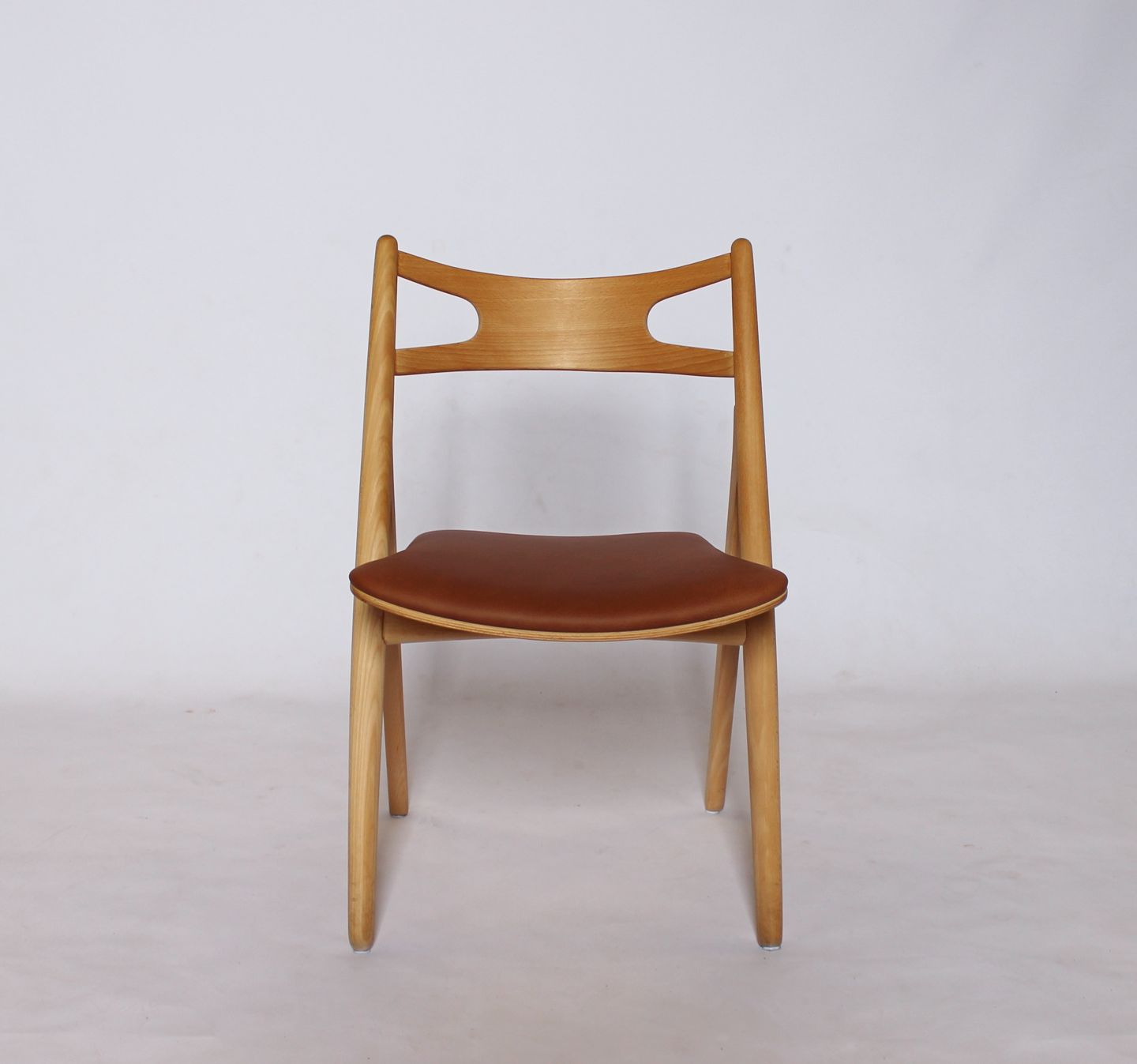 A Sawbuck chair, model CH29, designed by Hans J. Wegner in 1952 and manufactured by Carl Hansen & Son in the 1970s. The chair is made of soap treated beech and with seat of cognac elegance leather.
