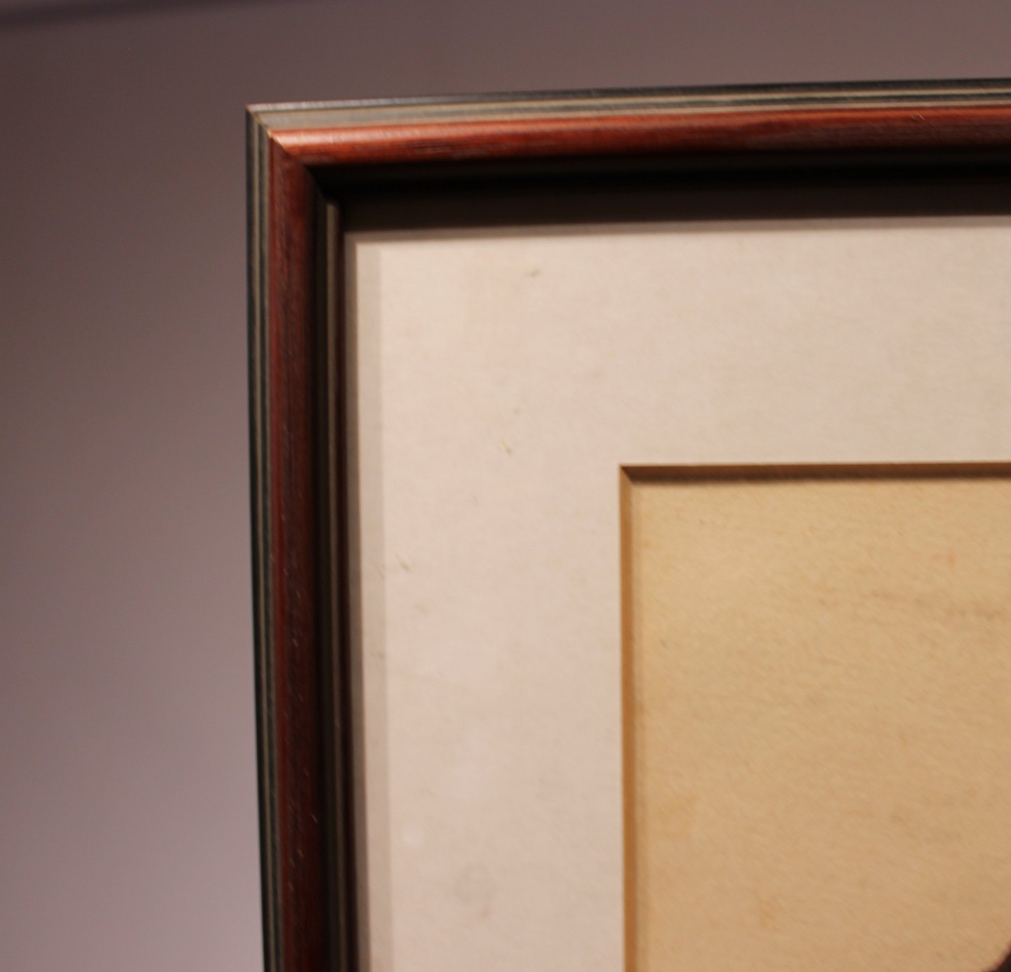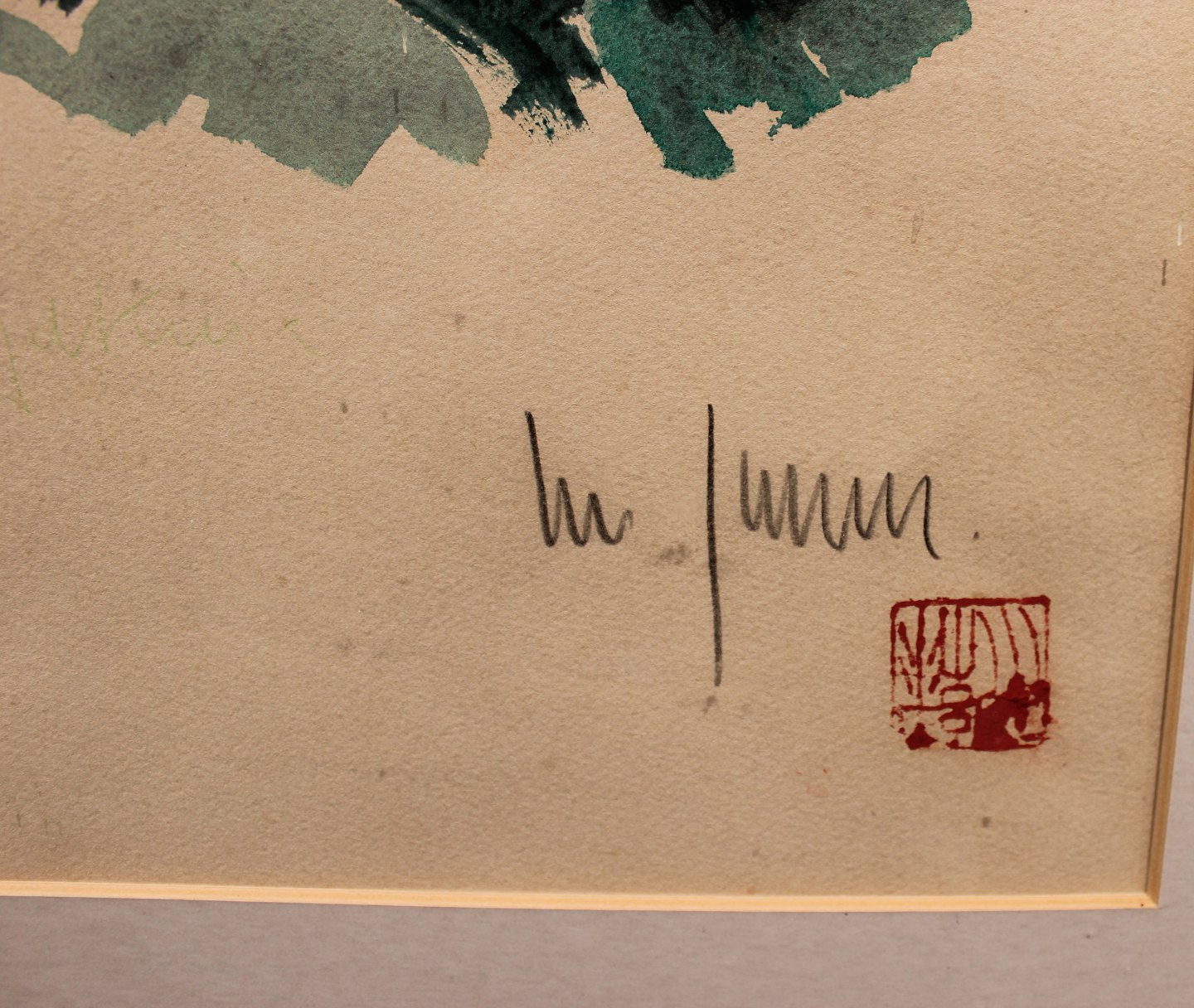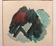 SolgtAkvarel i mørke grønne farver af Hansina Iversen fra Færøerne.