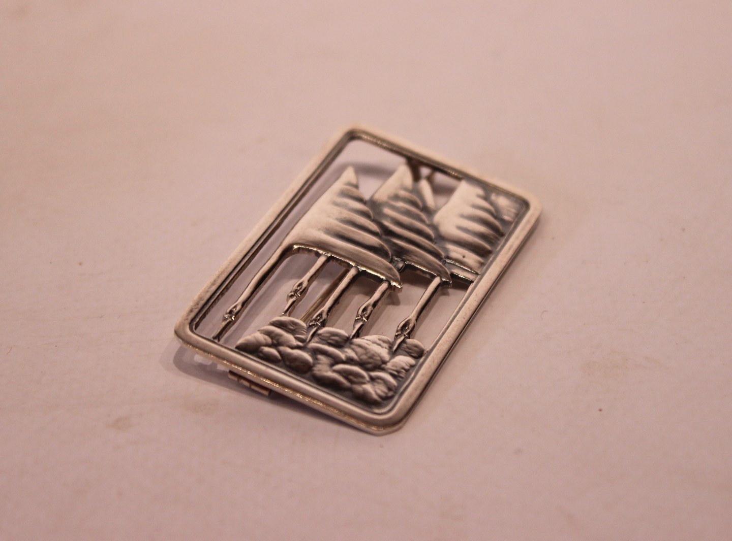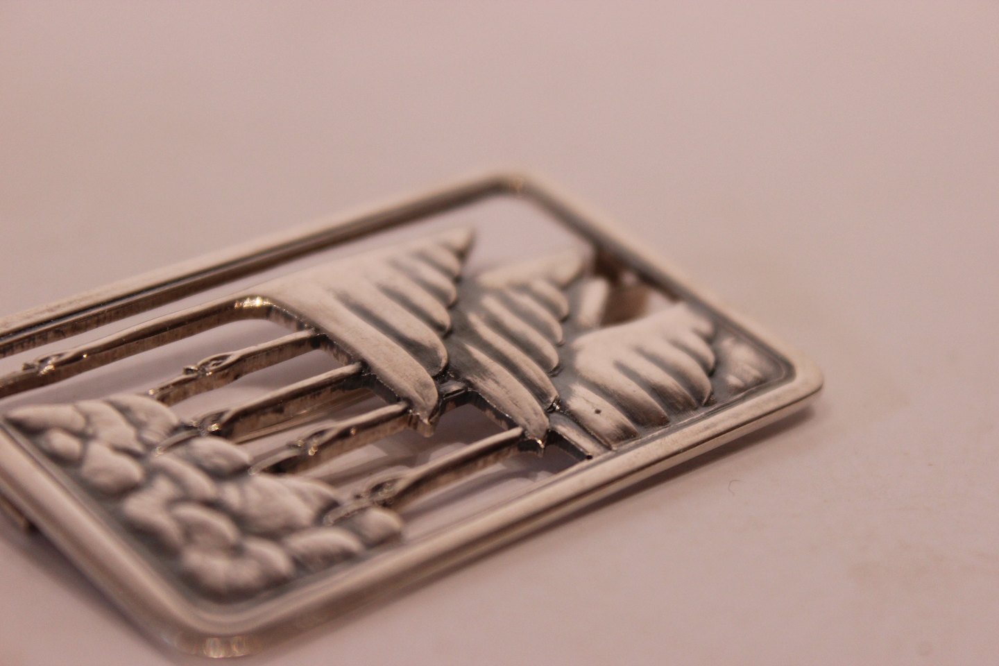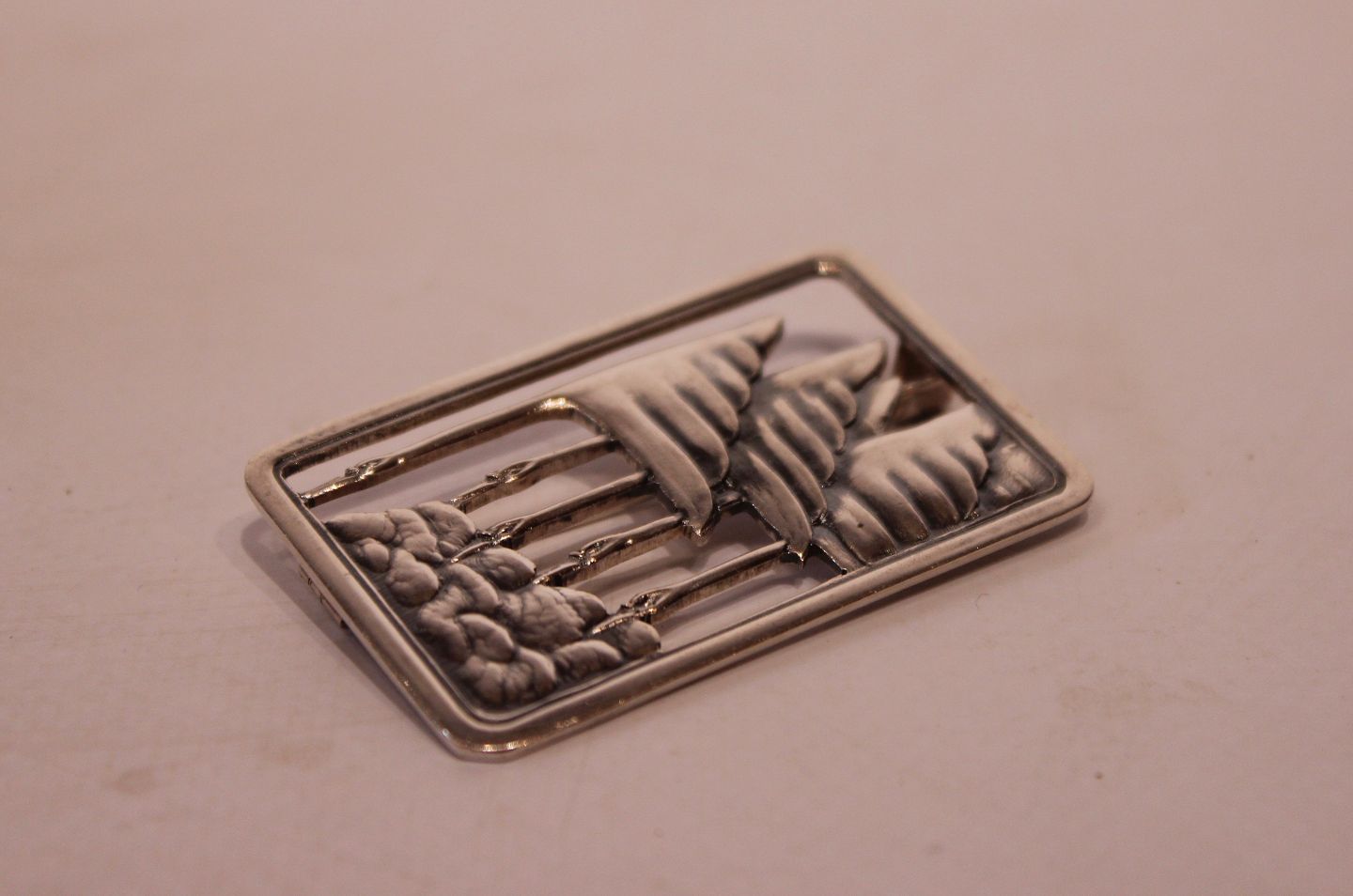 Firkantet broche med motiv af sterling sølv, stemplet H&A.