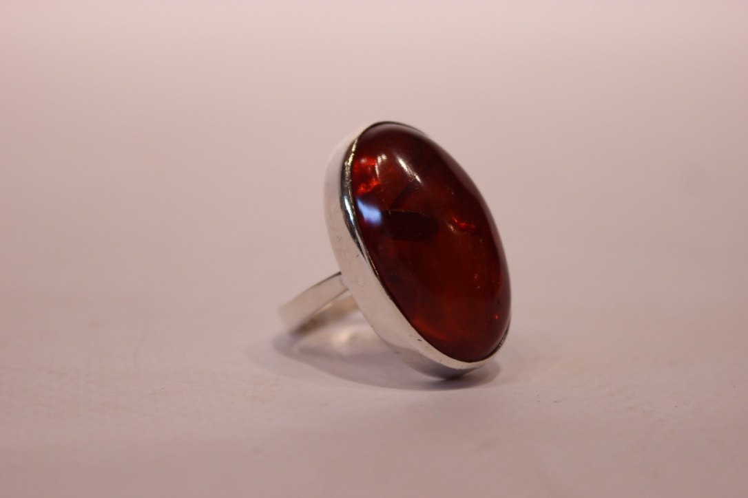 Ring med rav og af sterling sølv, stemplet F.F.