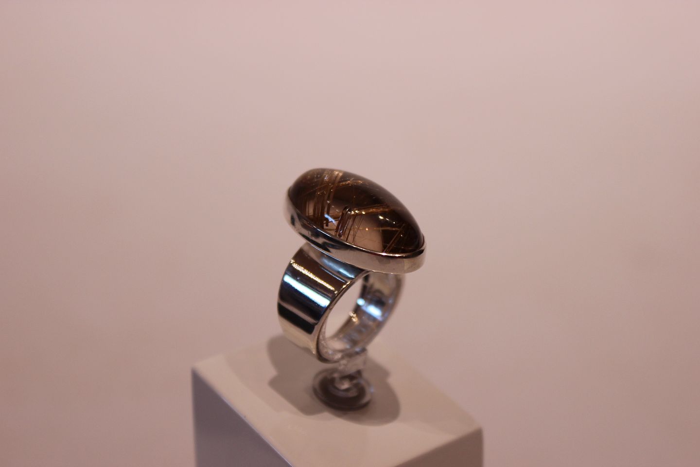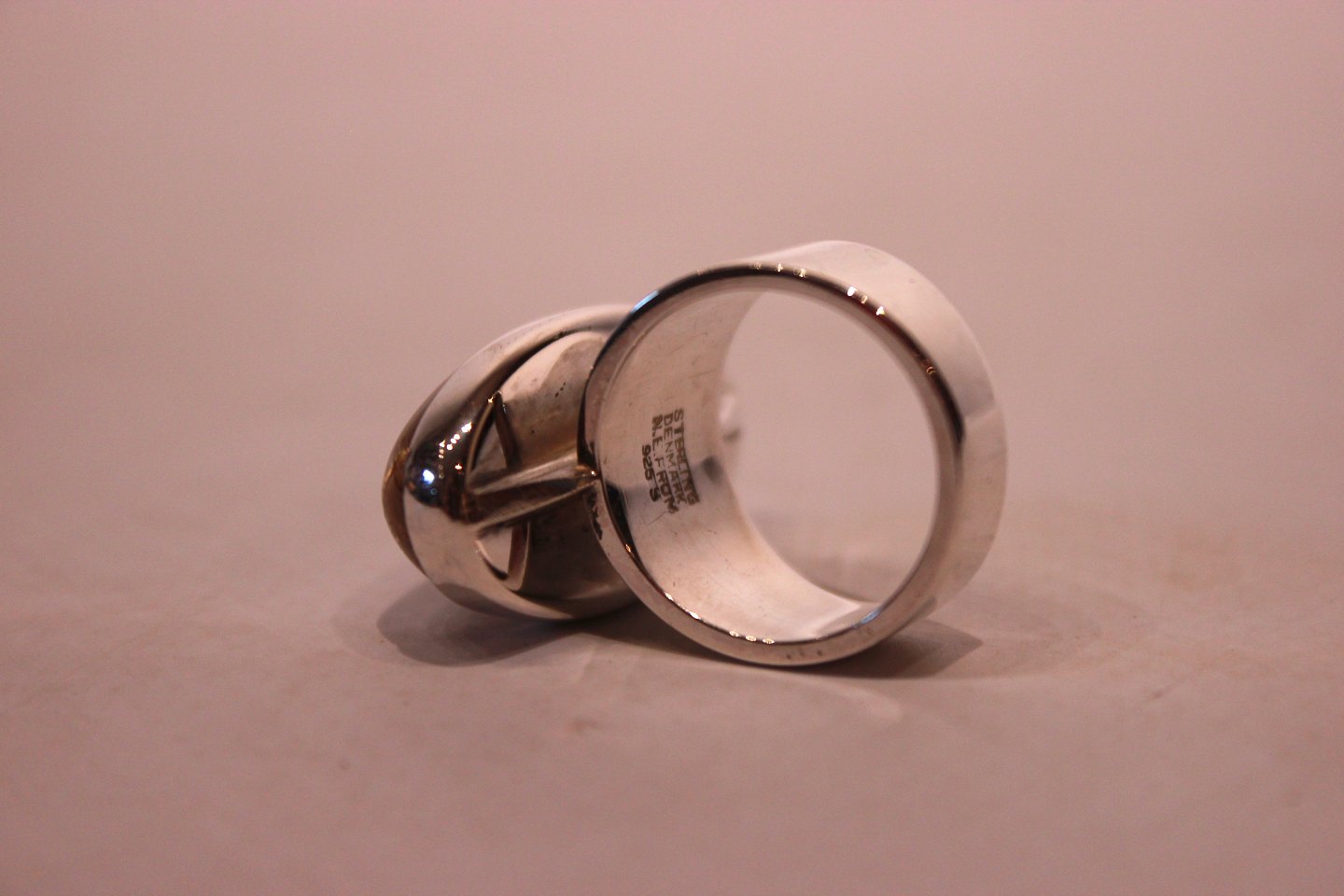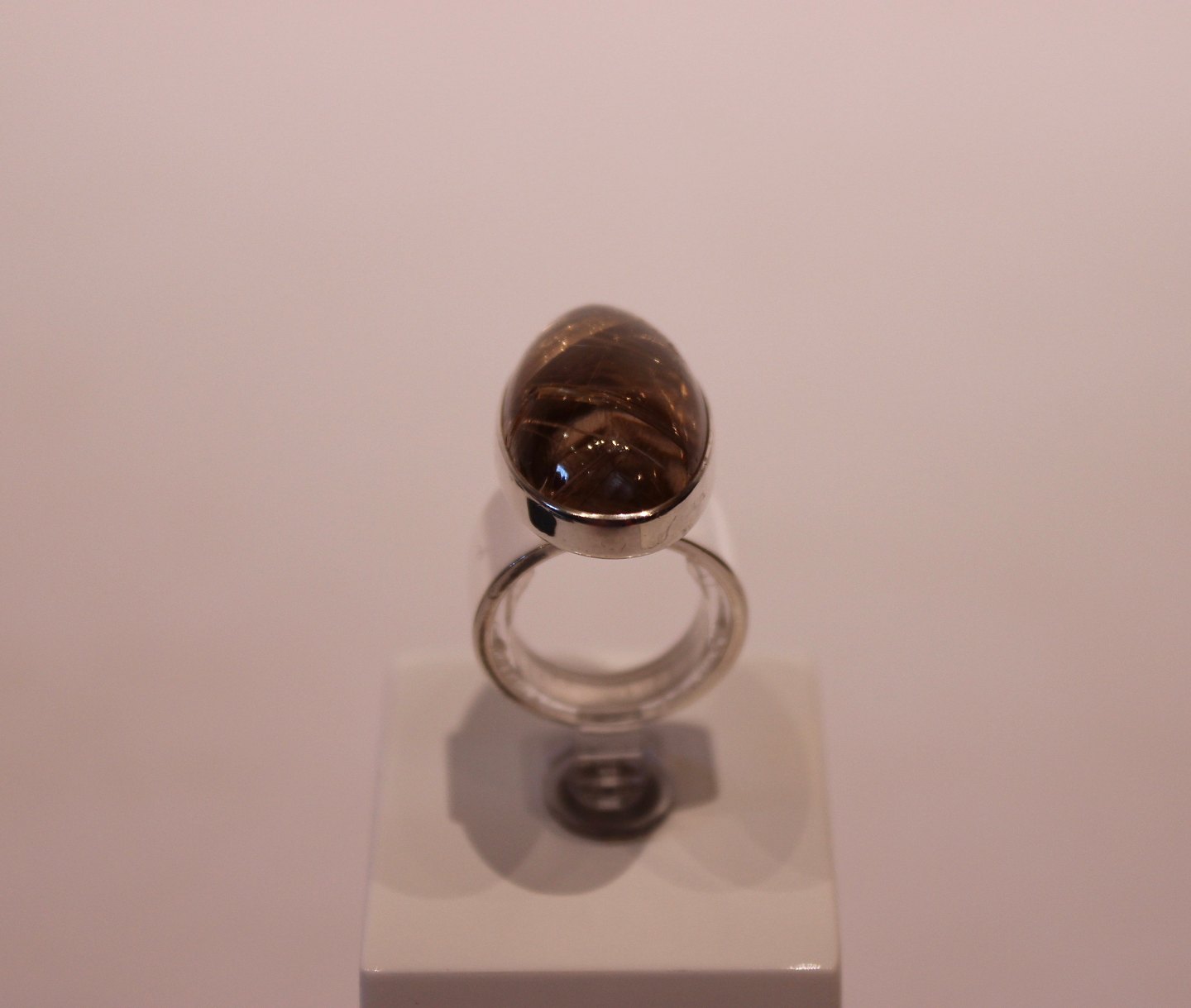 Ring med stor klar sten og af sterling sølv, stemplet N.E. From.