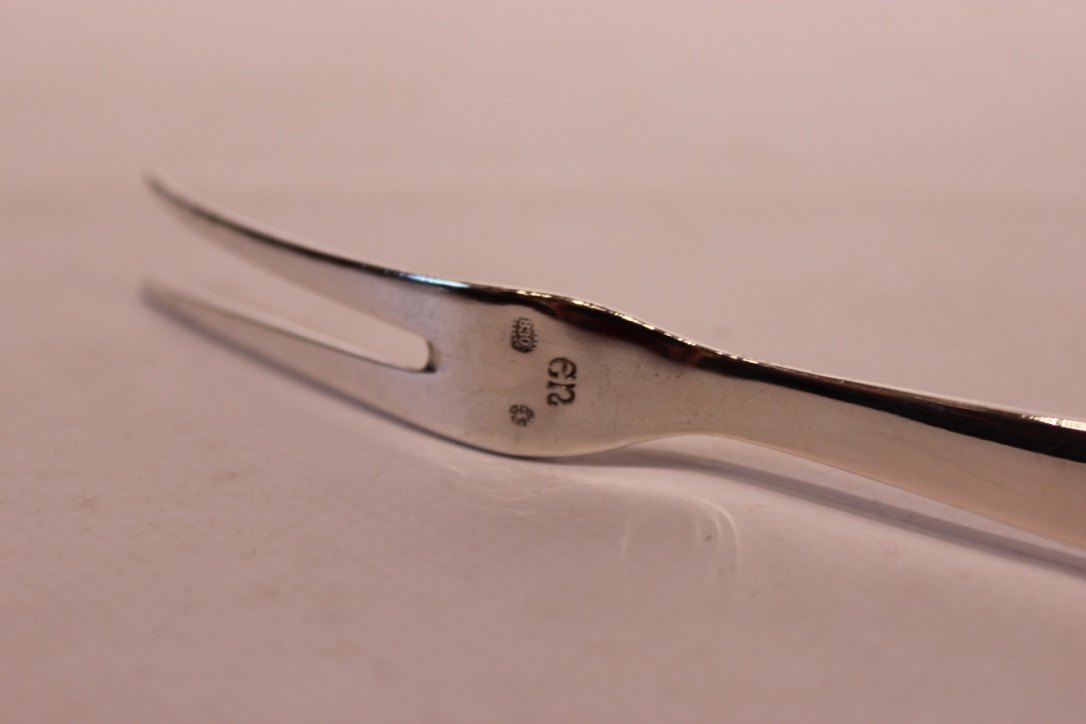 Pålægsgaffel af Evald Nielsen nr 37 i tretårnet sølv.